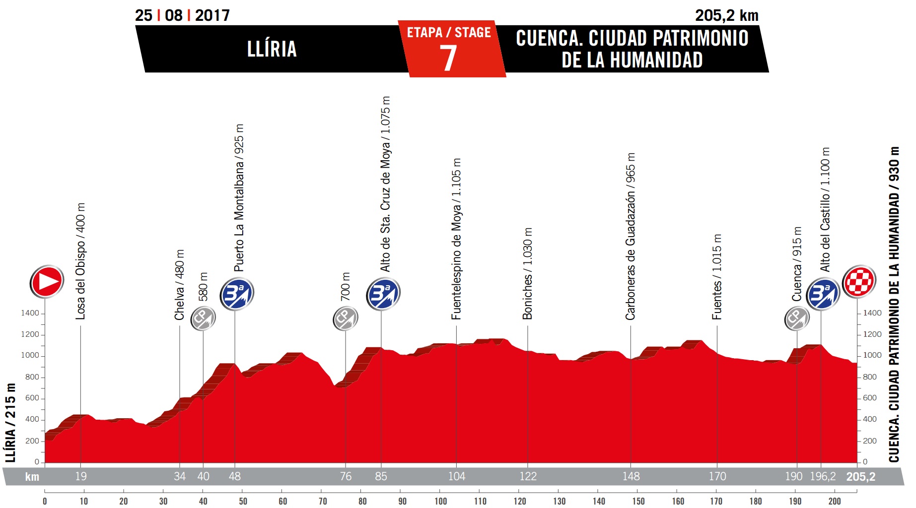 Friday August 25: stage seven – Lliria to Cuenca, 205.2km