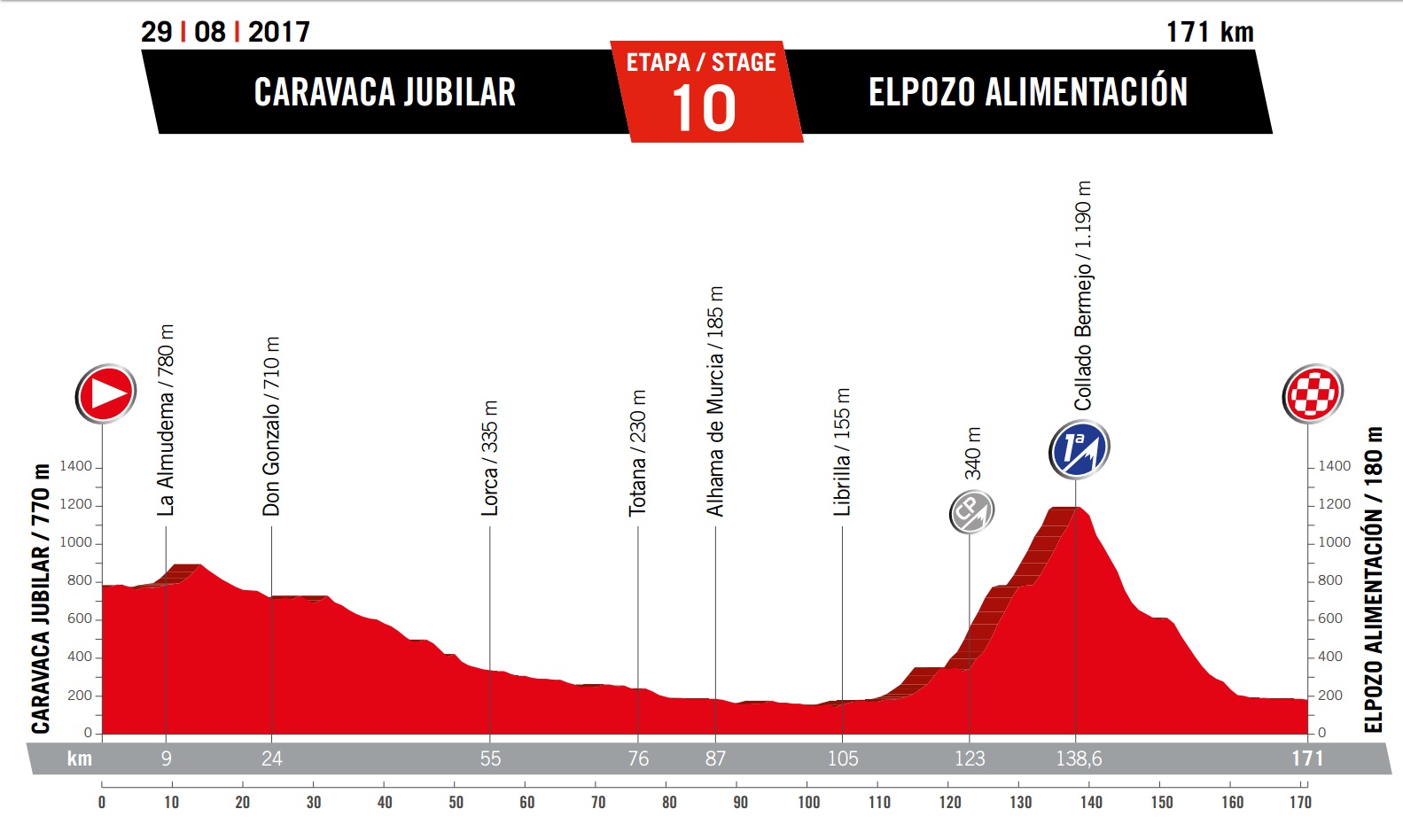 Tuesday August 29: stage ten – Caravaca Jubilar to Elpozo Alimentacion, 171km