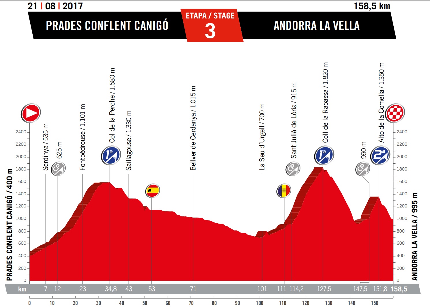 Monday August 21: stage three – Prades Conflent Canigo (FRA) to Andorra la Vella (AND), 158.5km