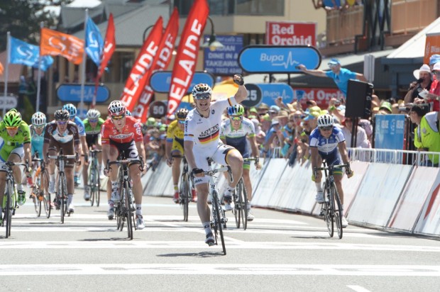 Having finished second at the People’s Choice Classic and again in stage one, Greipel ensured there would be no mistake this time round as he took advantage of his Lotto-Belisol team’s superb lead-out to power to victory by several bike lengths.
