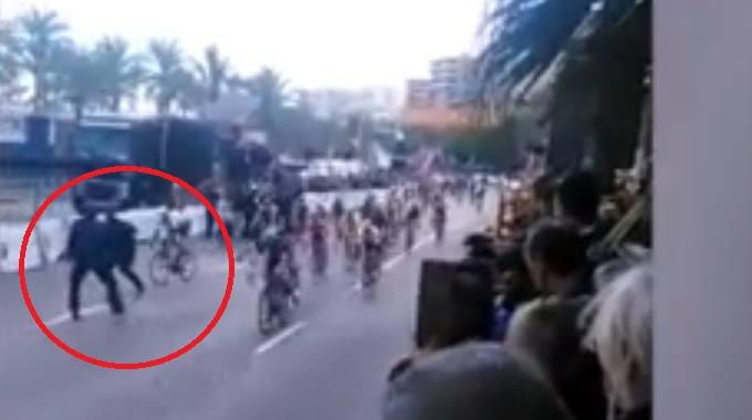 But moments after the Fortuneo-Vital Concept man crossed the line, he crashed into a photographer and was admitted to hospital with cuts to his lips and missing teeth.