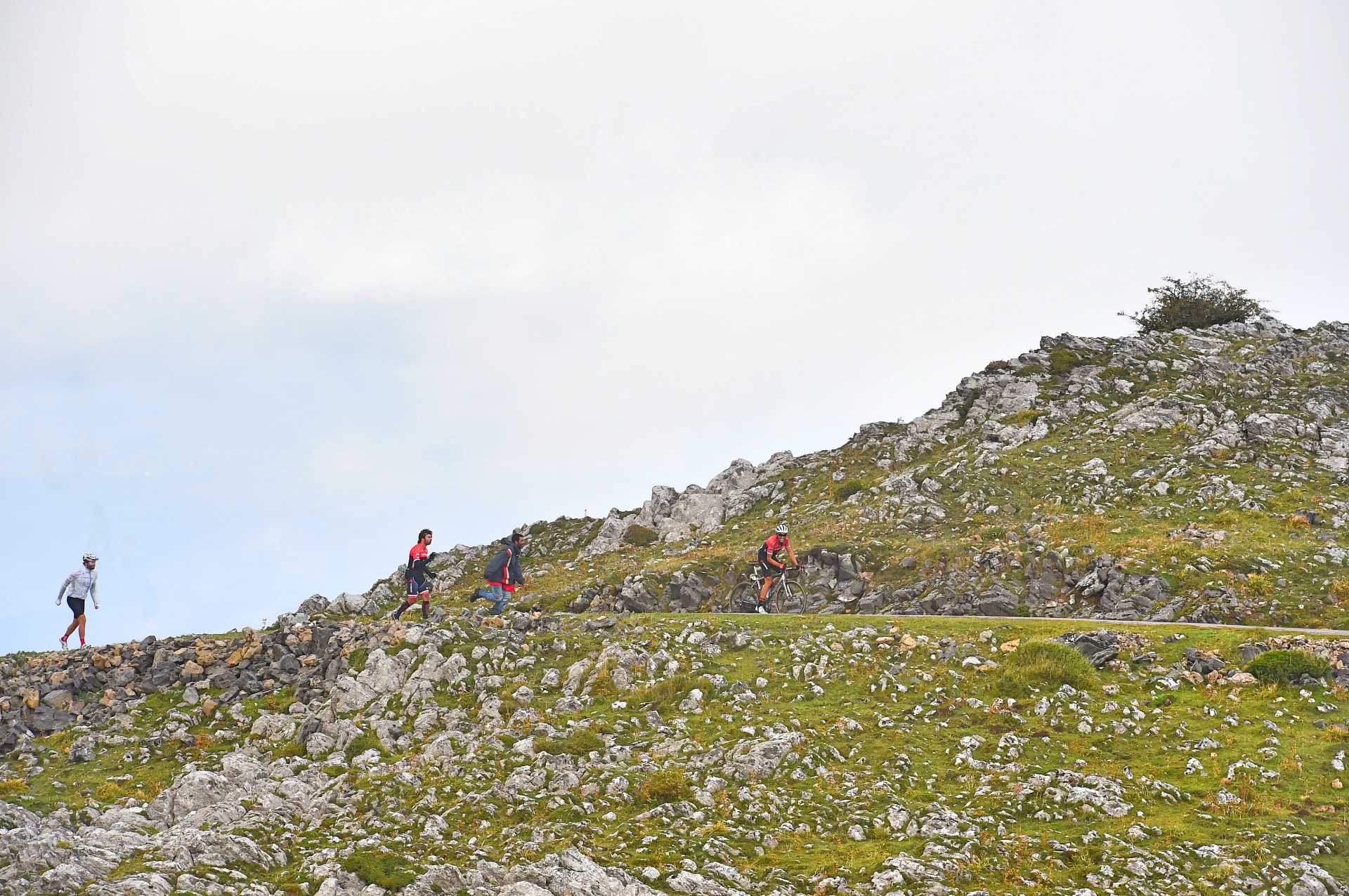 The gap was just 1’20” over the summit of the first climb, the Alto de la Cobertoria, with the pace high in the peloton behind as Team Sky shut down an attempted attack by Vincenzo Nibali and his Bahrain-Merida team-mates.