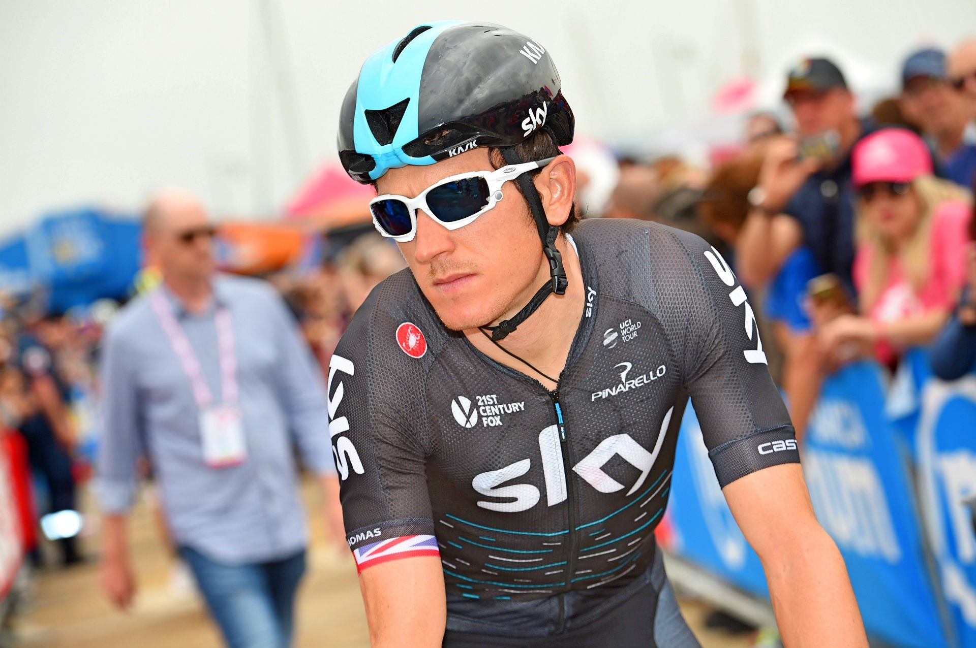 Team Sky’s Welshman was bidding to become the first Brit to ever win the Giro d’Italia, but his GC hopes took a huge hit when he was one of several riders to hit the deck in an incident involving a poorly-positioned police motorbike.