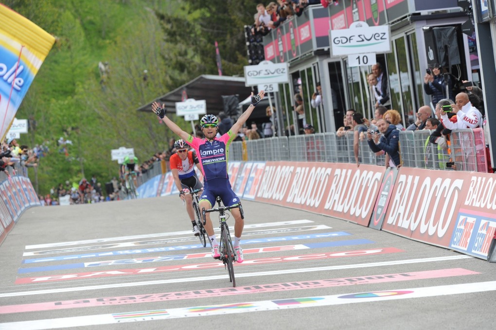 Diego Ullissi (Lampre Merida) claimed his second stage victory of the 2014 Giro d’Italia with a perfectly timed attack at the end of a gripping and hugely demanding eighth stage from Foligno to Montecopiolo.