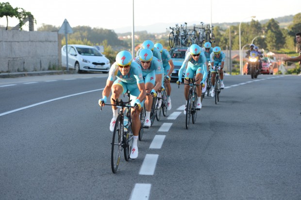 The Kazakh squad, whose Scicilian leader, winner of the Vuelta in 2010, is the pre-race favourite, finished some 10 seconds ahead of a Radioshack-Leopard team led home by four-time world time trial champion, Fabian Cancellara.