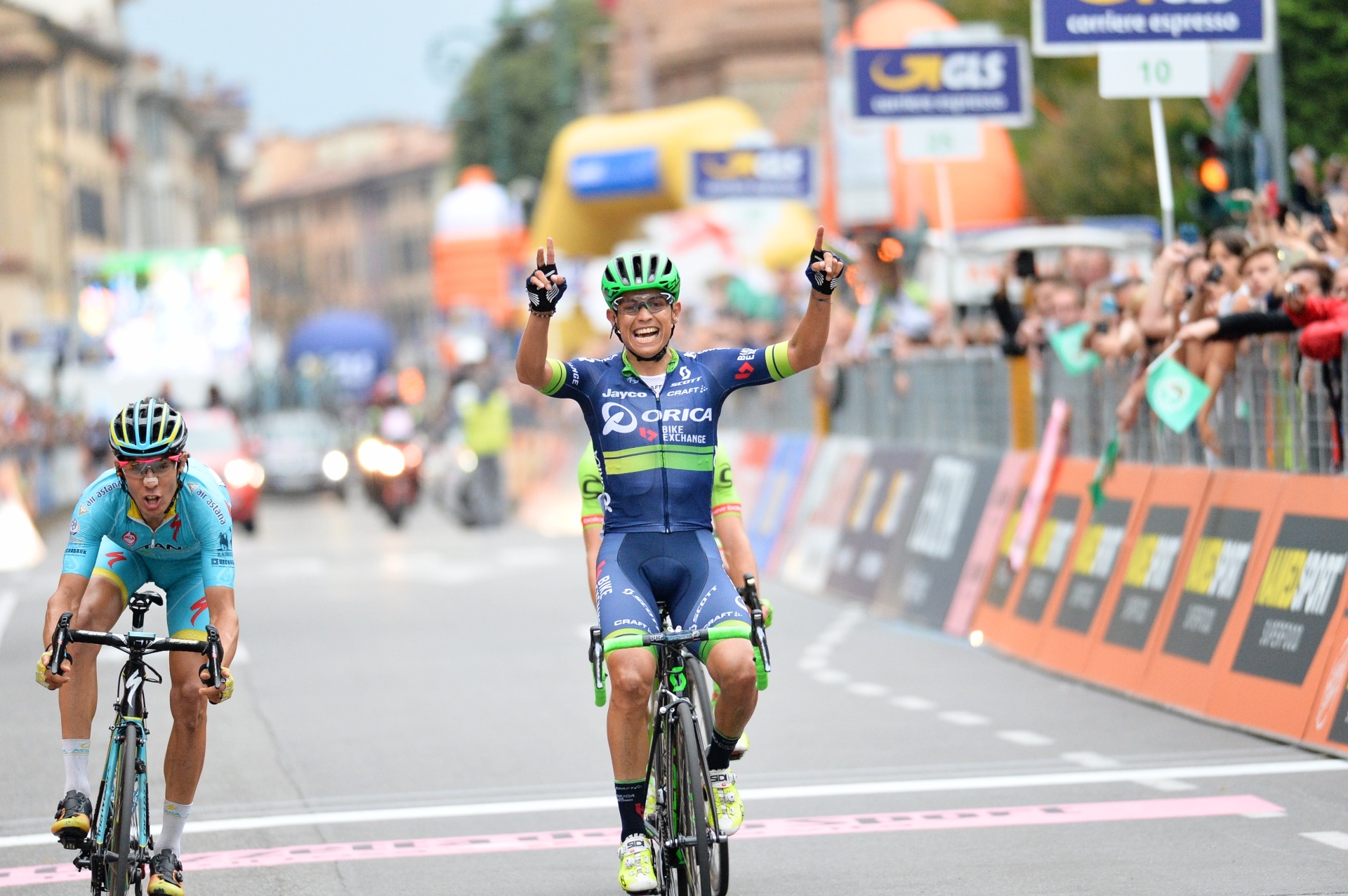 The Orica-BikeExchange man escaped with compatriot Rigoberto Uran (Cannondale-Drapac) on the Bergamo Alta ascent with five kilometres left, and while Astana’s Diego Rosa came back strong, Chaves outsprinted the Italian to claim victory.