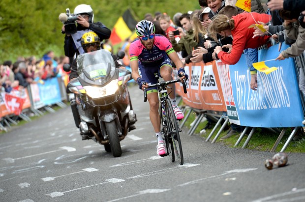 Lampre-Merida’s formidable leading duo of Damiano Cunego and Diego Ullissi made a well-timed appearance at the front of the peloton as they began the 1.9km ascent of the Forges. Gerrans, rested mid-week from La Flèche Wallonne, was also prominent. Behind them, serious talents began to the feel the effects of an early shift for their team leaders, including Rory Sutherland (Tinkoff-Saxo) and Peter Wiening (Orica-GreenEDGE).