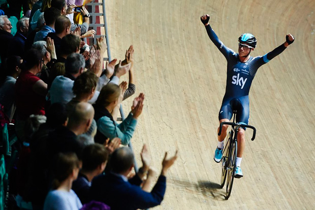 The duo’s world record topped a sensational day of racing in Manchester, which had earlier seen Team Sky’s Pete Kennaugh lap an elite points race field a sensational seven times on his way to a stunning victory.