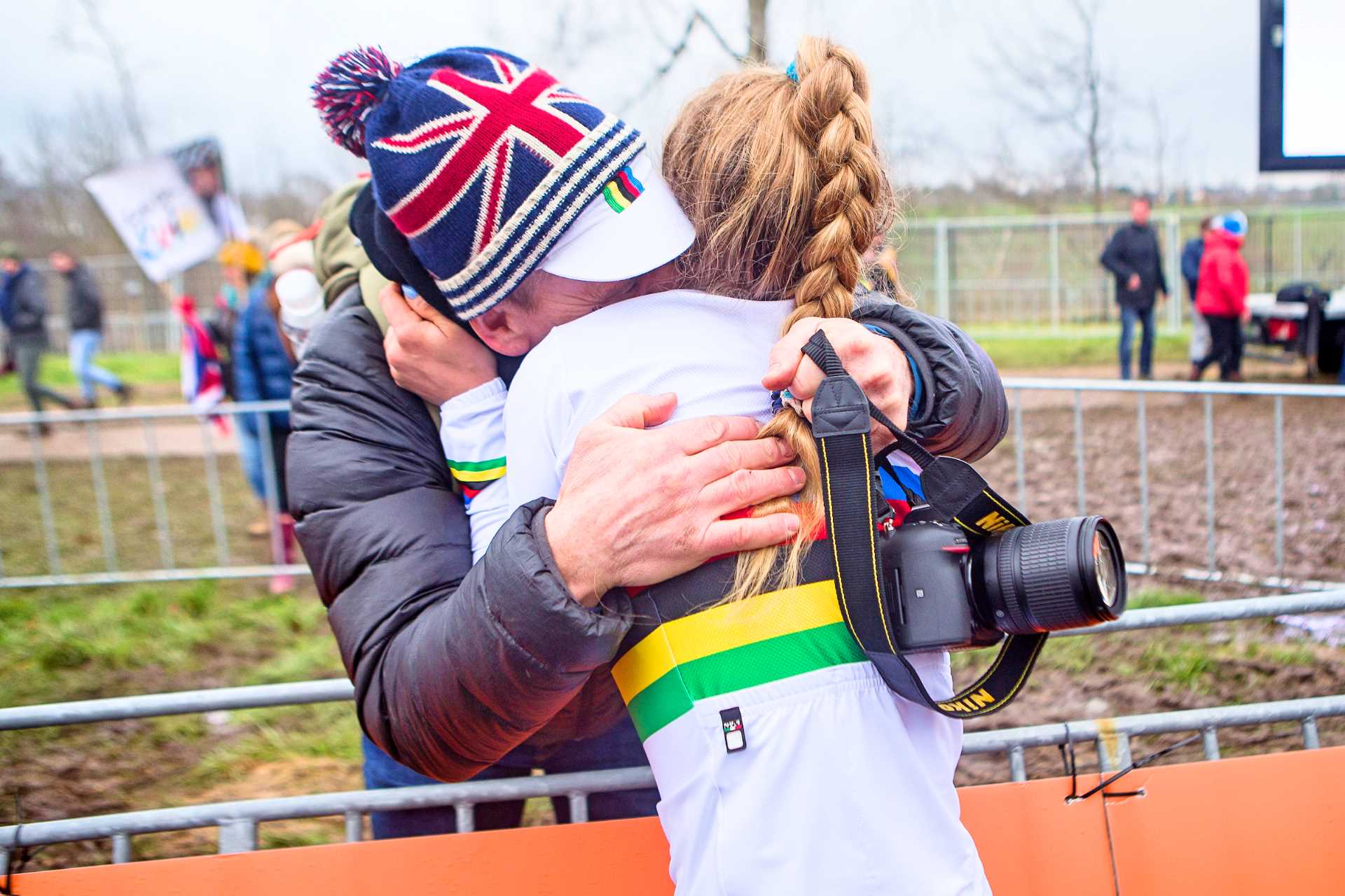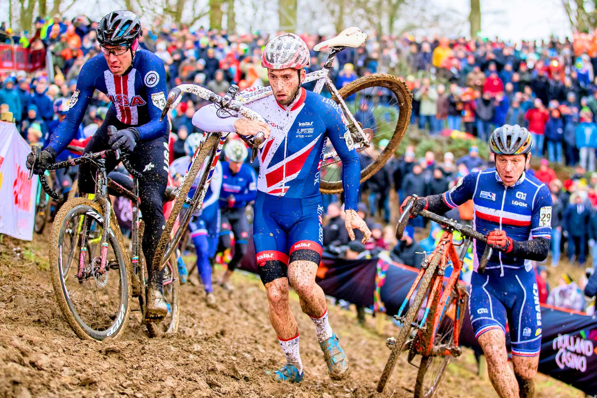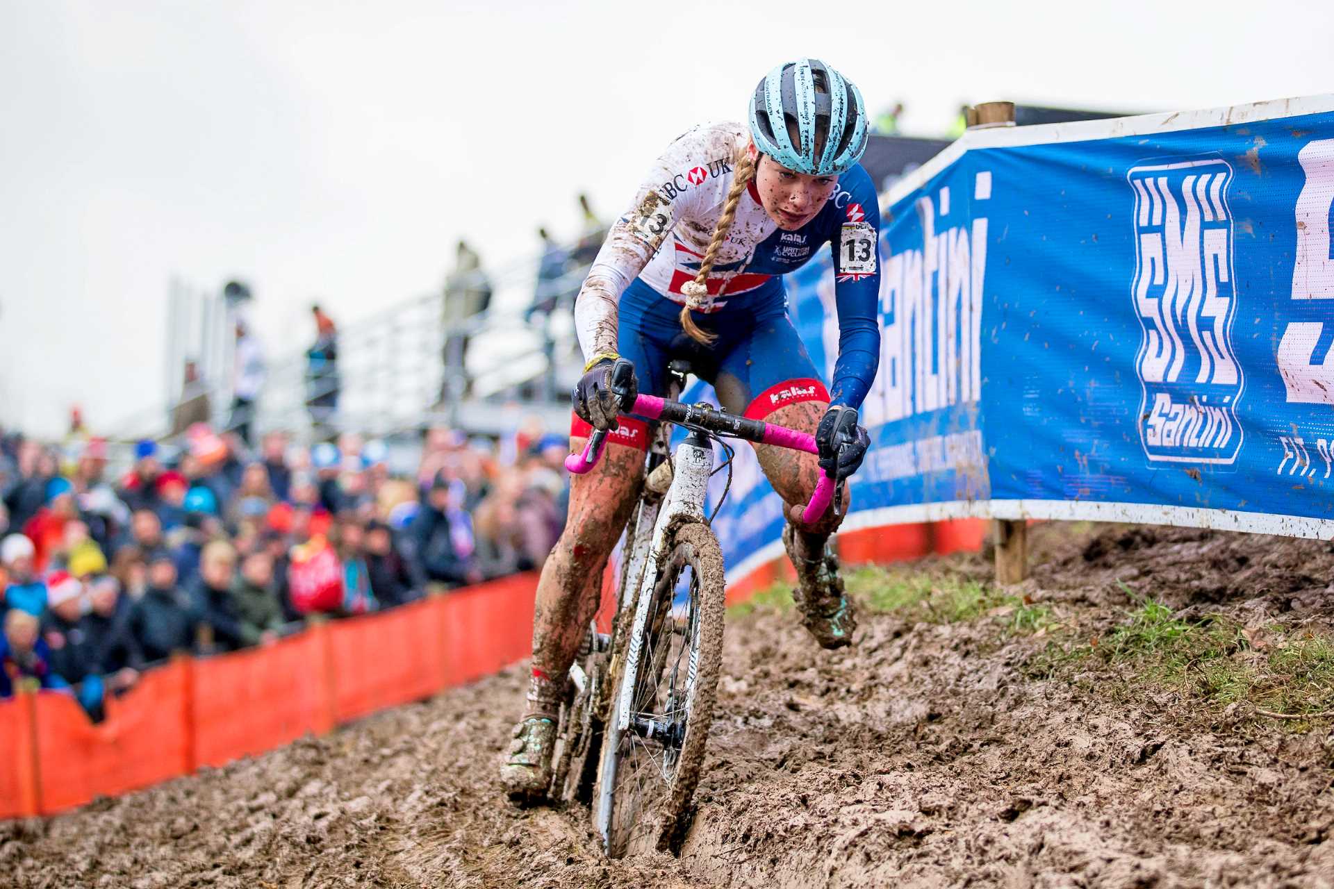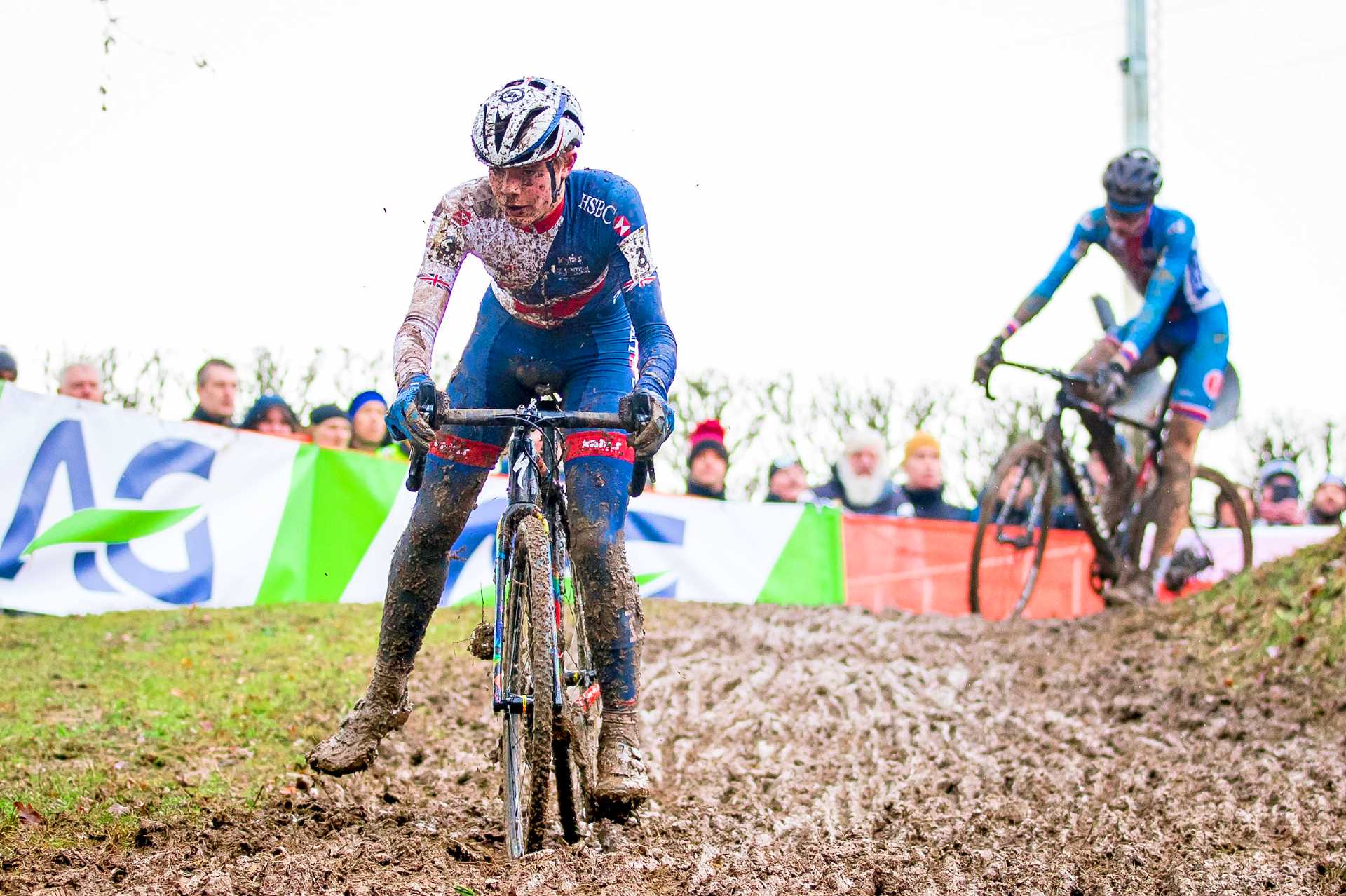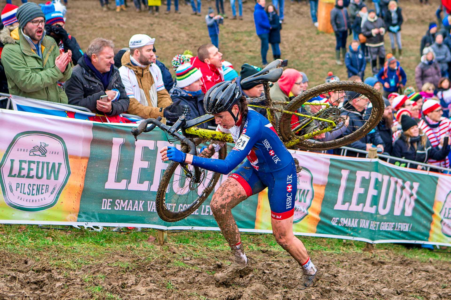 Sanne Cant claimed her second consecutive elite women’s victory after an epic battle on the muddy course with America’s Katie Compton; Nikki Brammeier finished 11th and Helen Wyman was 13th.