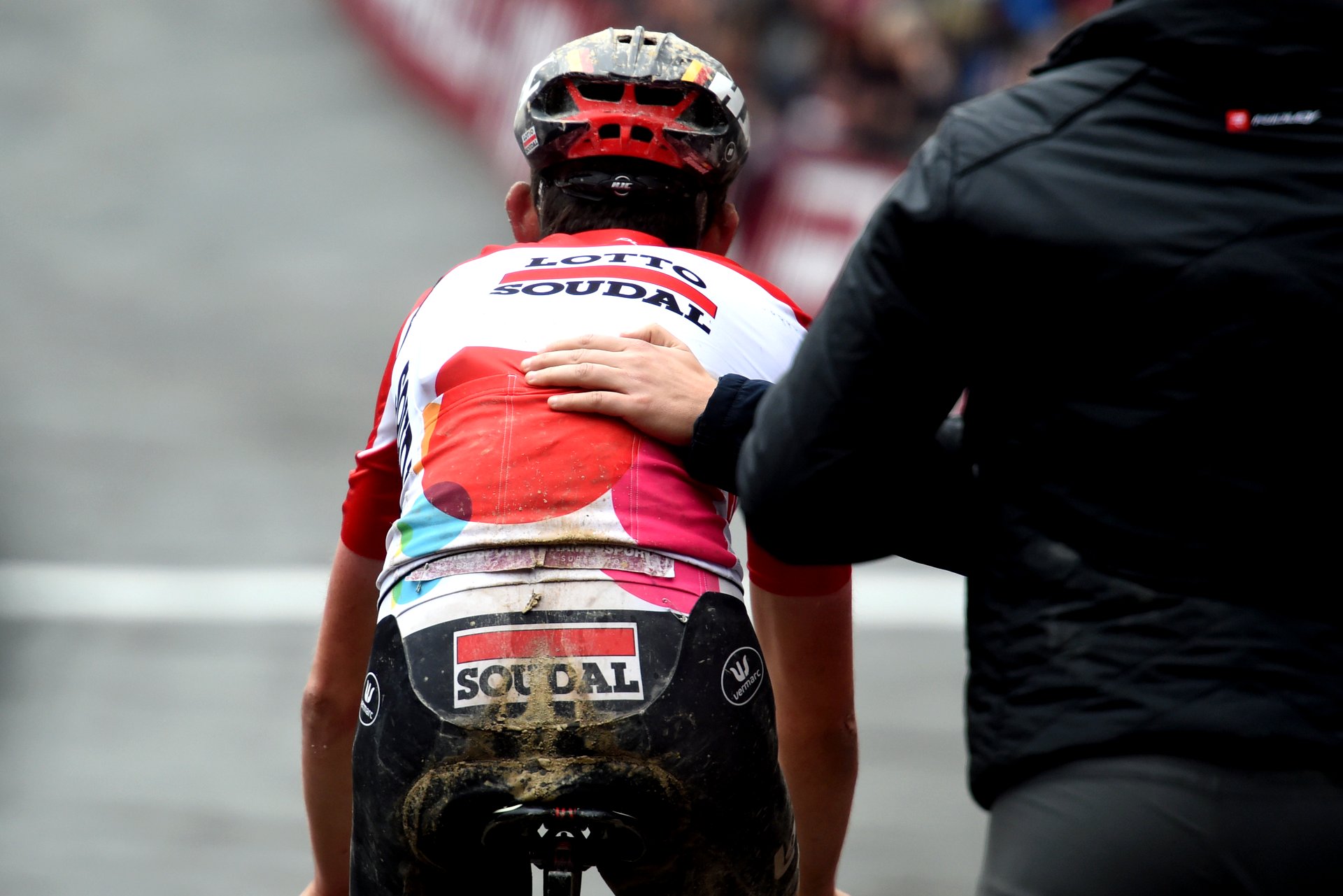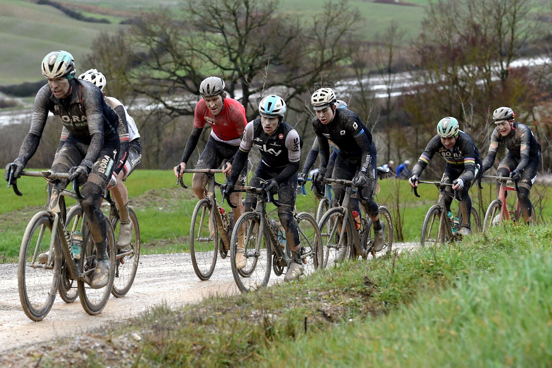 Caked in mud during an edition of Strade Bianche that will go down in history, Benoot’s race-winning move came on the steep, uphill final sector and left Bardet and Van Aert with no answer as they came in second and third respectively.