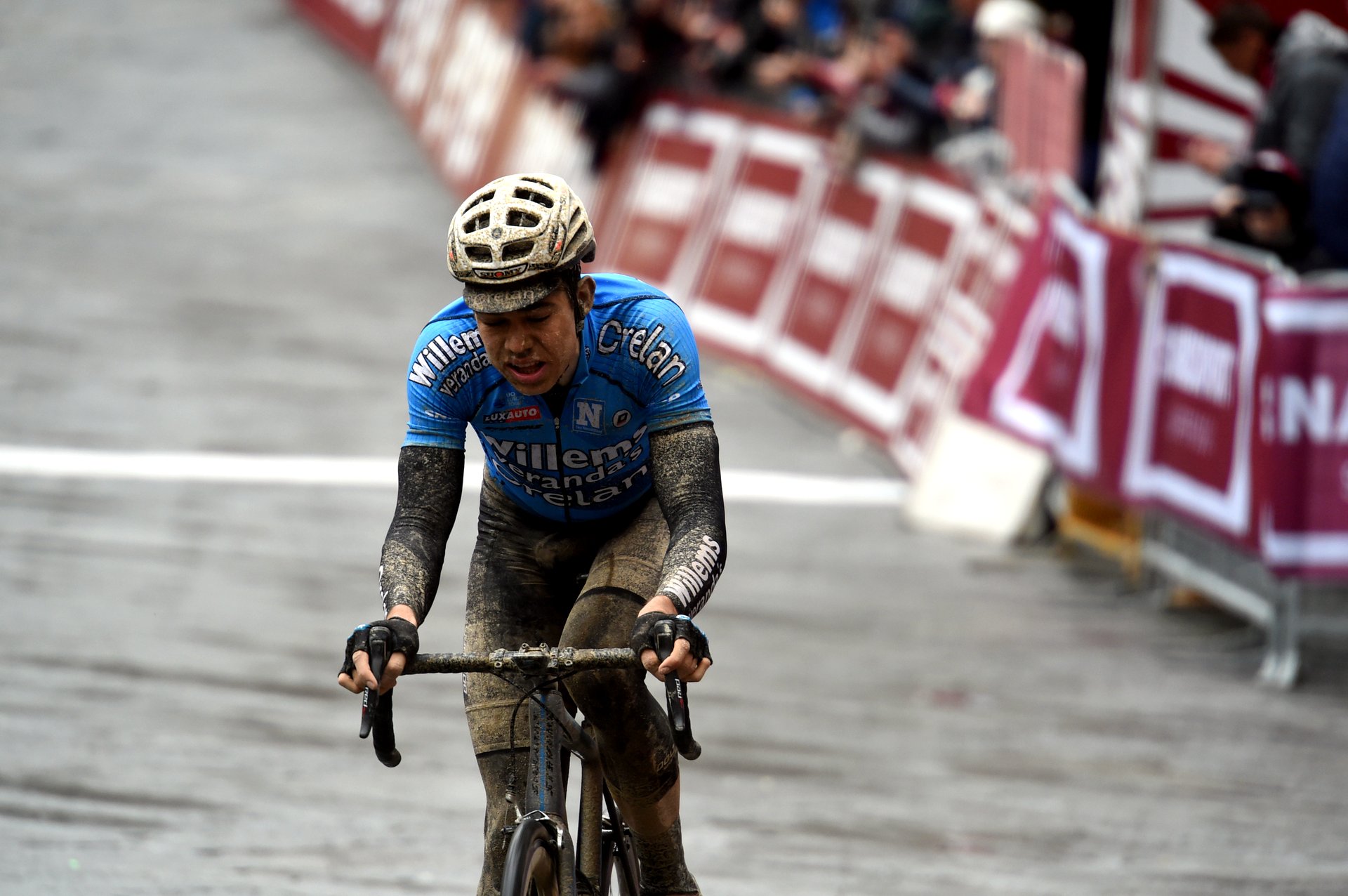 The Belgian, 23, bridged across to leaders Romain Bardet (Ag2r-La Mondiale) and Wout van Aert (Verandas Willems-Crelan), before accelerating away on the final gravel sector to claim the win.