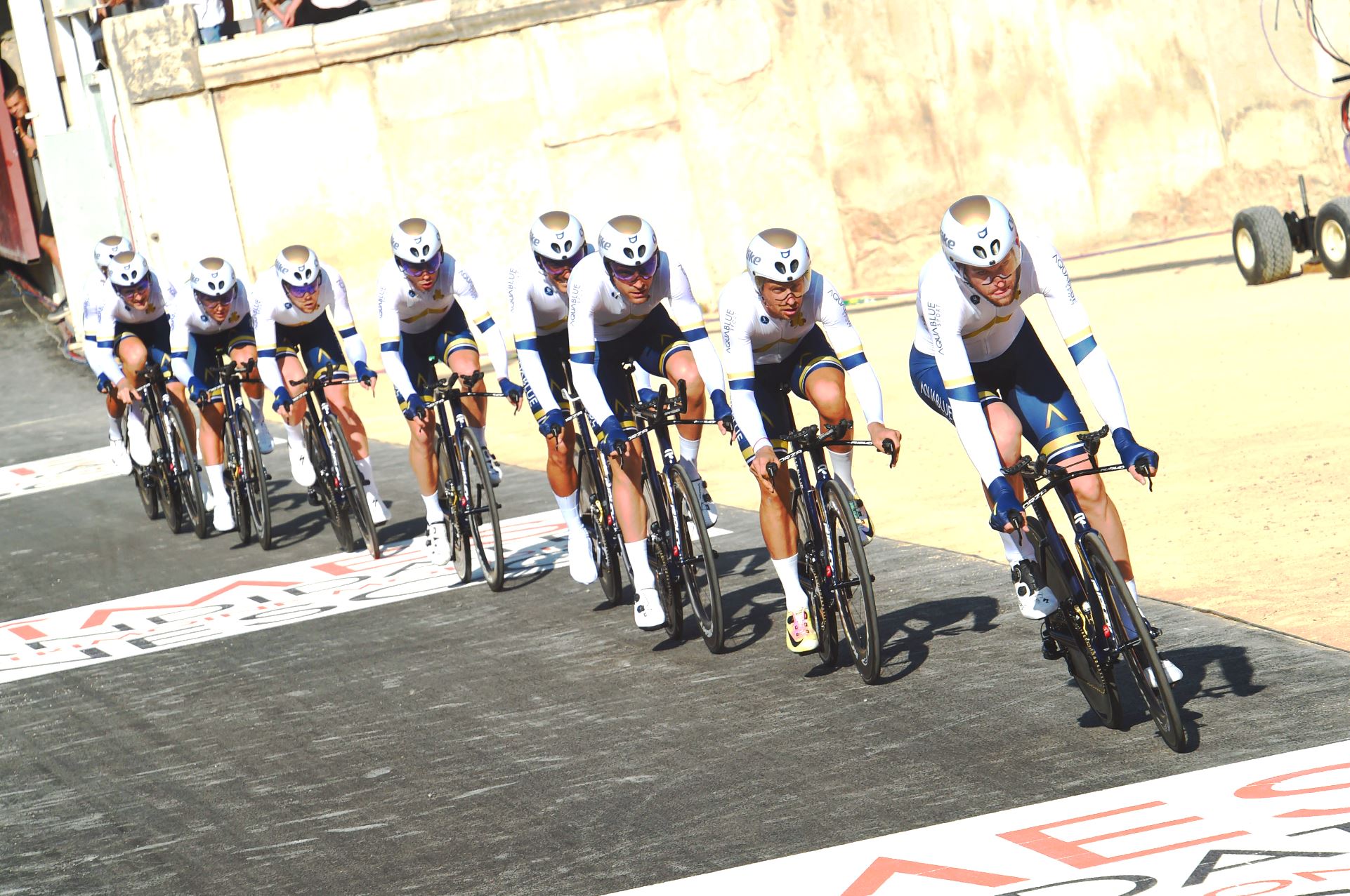 Dennis led home his team on the relatively flat first stage, which included a passage through a Roman Colosseum, in a time of 15.58 – six seconds faster than world champions QuickStep Floors and surprise package Team Sunweb.