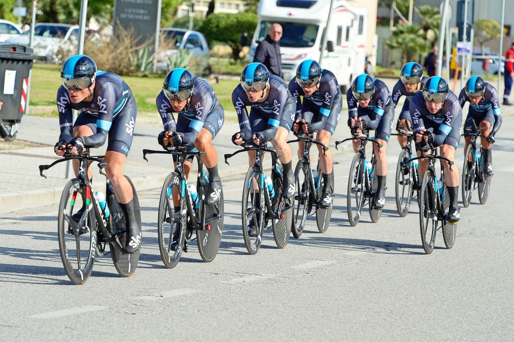 World team time trial bronze medal winners Movistar, with Alex Dowsett in their ranks, were the first team off the ramp in Lido di Camaiore but their time of 24.24 was beaten immediately by Tinkoff.