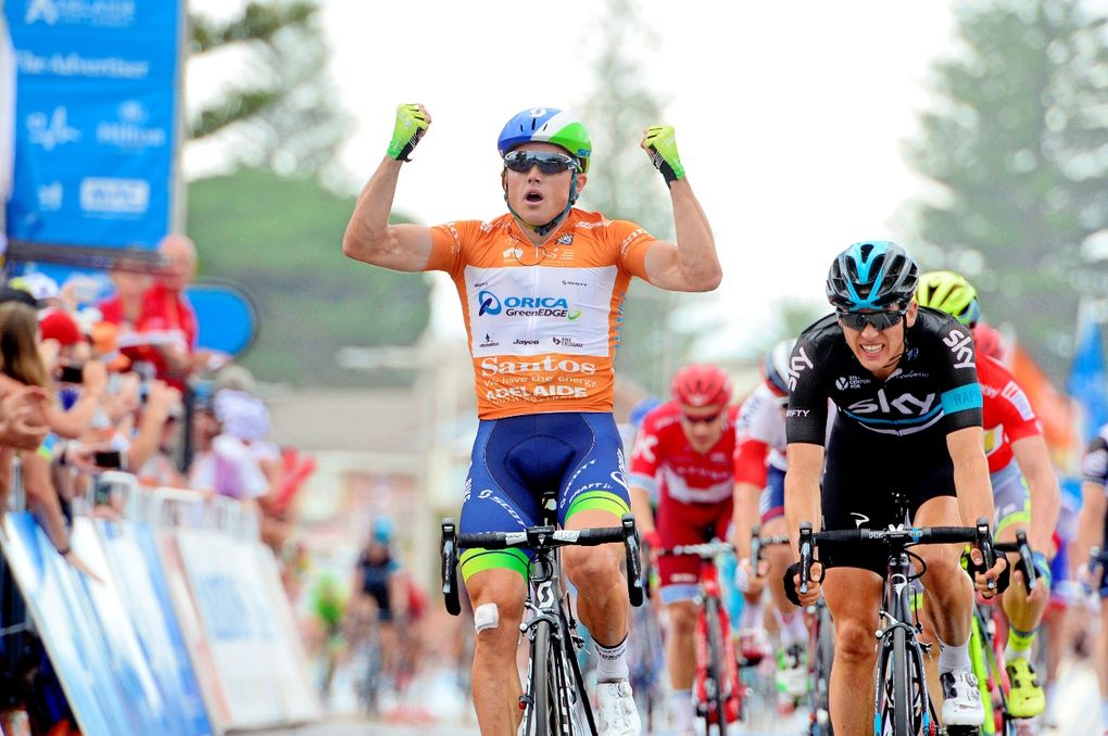Stage three winner Gerrans profited from a great lead-out from Daryl Impey to outsprint Ben Swift (Team Sky) and claim the full ten bonus seconds at the finish line.
