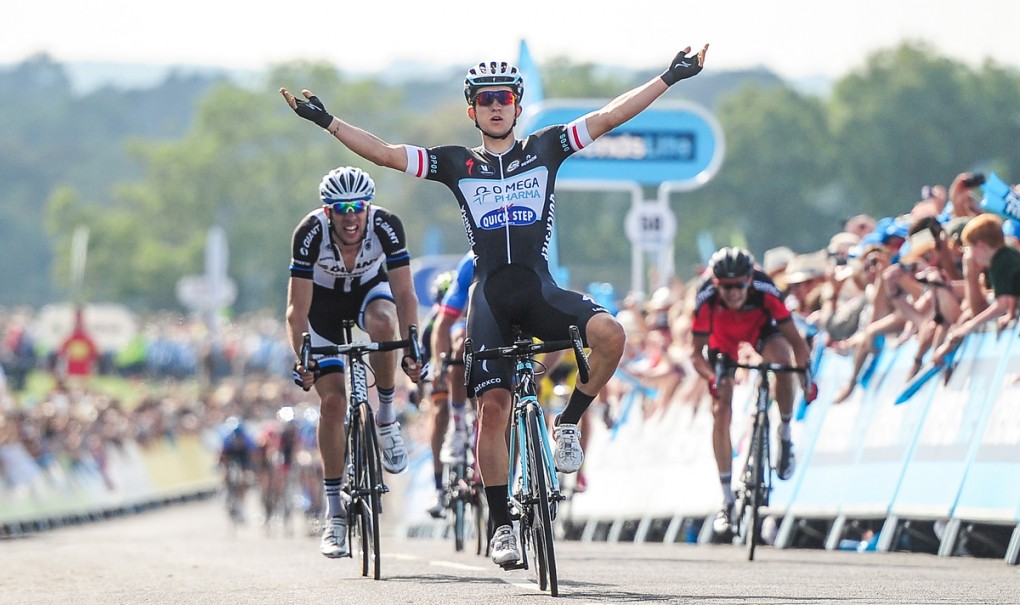 The Dutchman accelerated but too late to hold off the Omega Pharma-Quickstep man who powered through and had enough time to sit up and raise his arms in celebration.