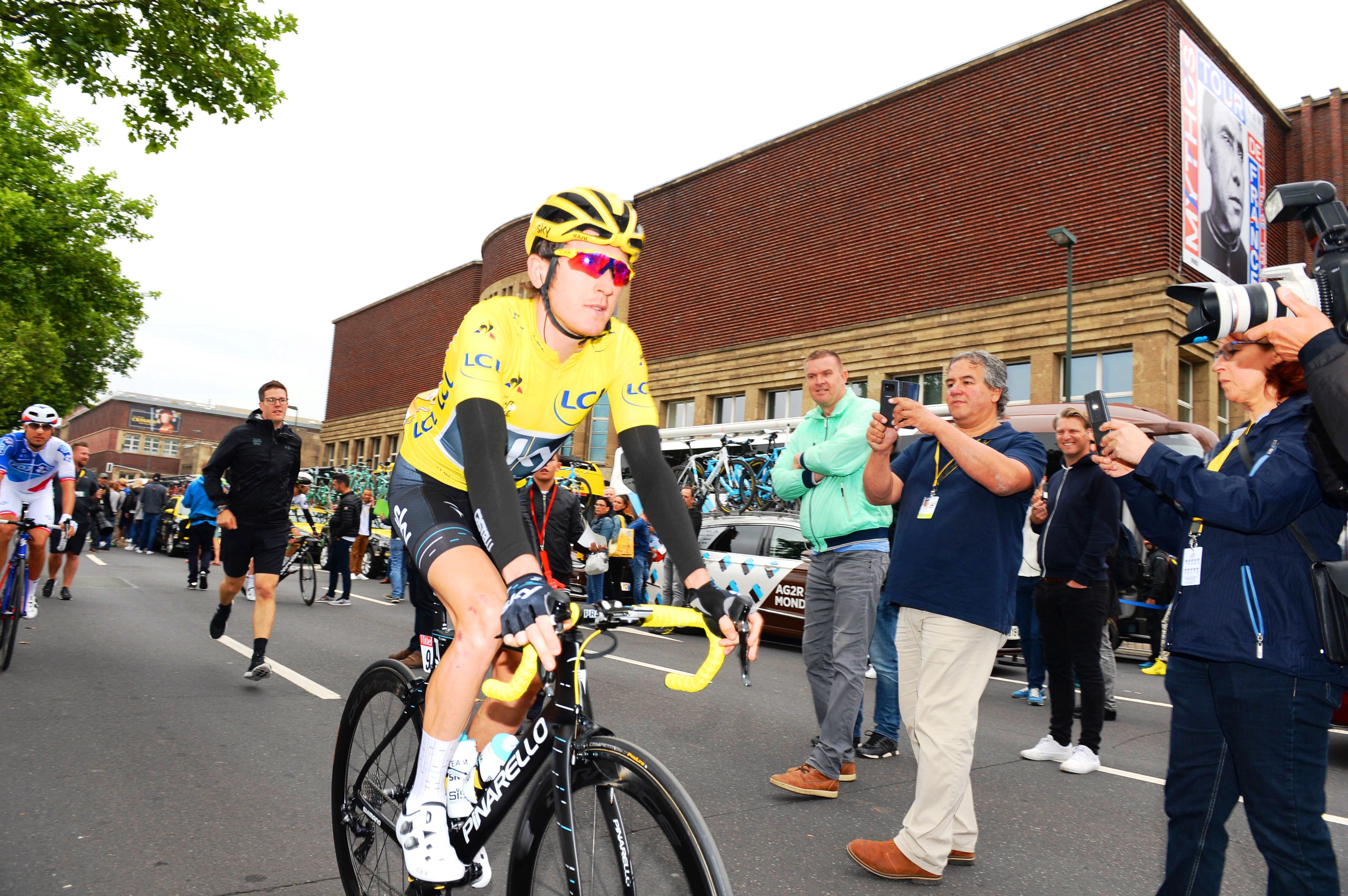 But both men, along with all of their GC rivals, remounted and finished safely in the peloton, however, as Geraint Thomas (Team Sky) held on to the maillot jaune.