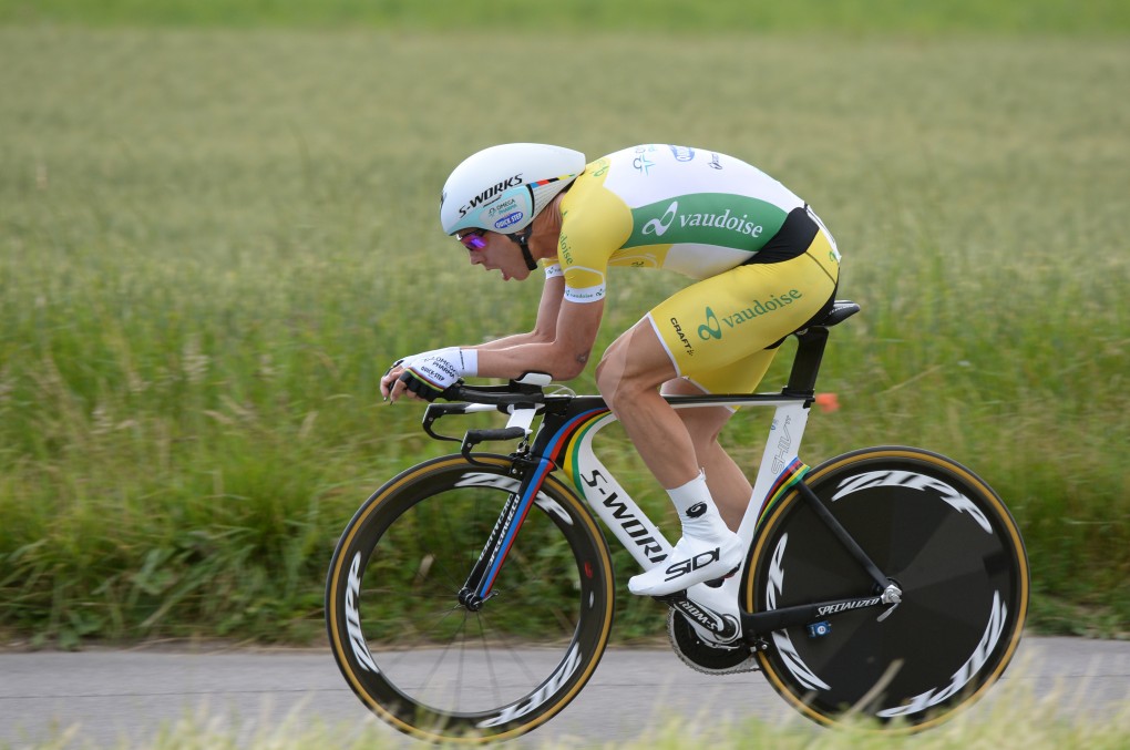 Matthias Frank, in the jersey of best Swiss rider, ensured he stayed in overall contention however, crossing in 32.22 with a very powerful sprint in the final 300 metres.