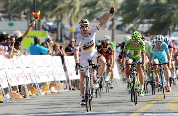 Andre Greipel is back in the red jersey after his second win in three days in Oman (pic: Bruno Bade/ASO)