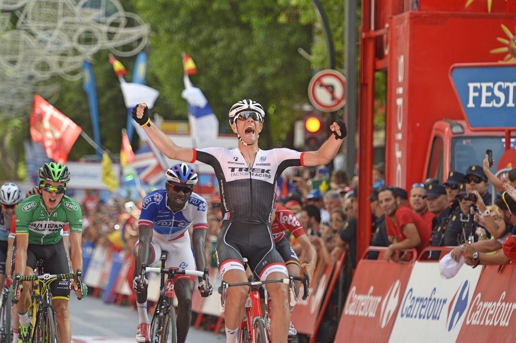 Adam Hansen (Lotto-Soudal), in typical fashion, was the last man to attack but it came down to a final sprint and Stuyven fought through the pain to beat Pello Bilbao (Caja Rural) and Kevin Reza (FDJ) to victory.
