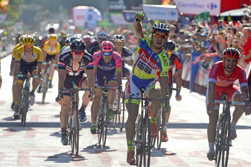 Peter Sagan (Tinkoff-Saxo) sprinted to victory on stage three of the Vuelta a Espana to finally end his winless streak at Grand Tours.