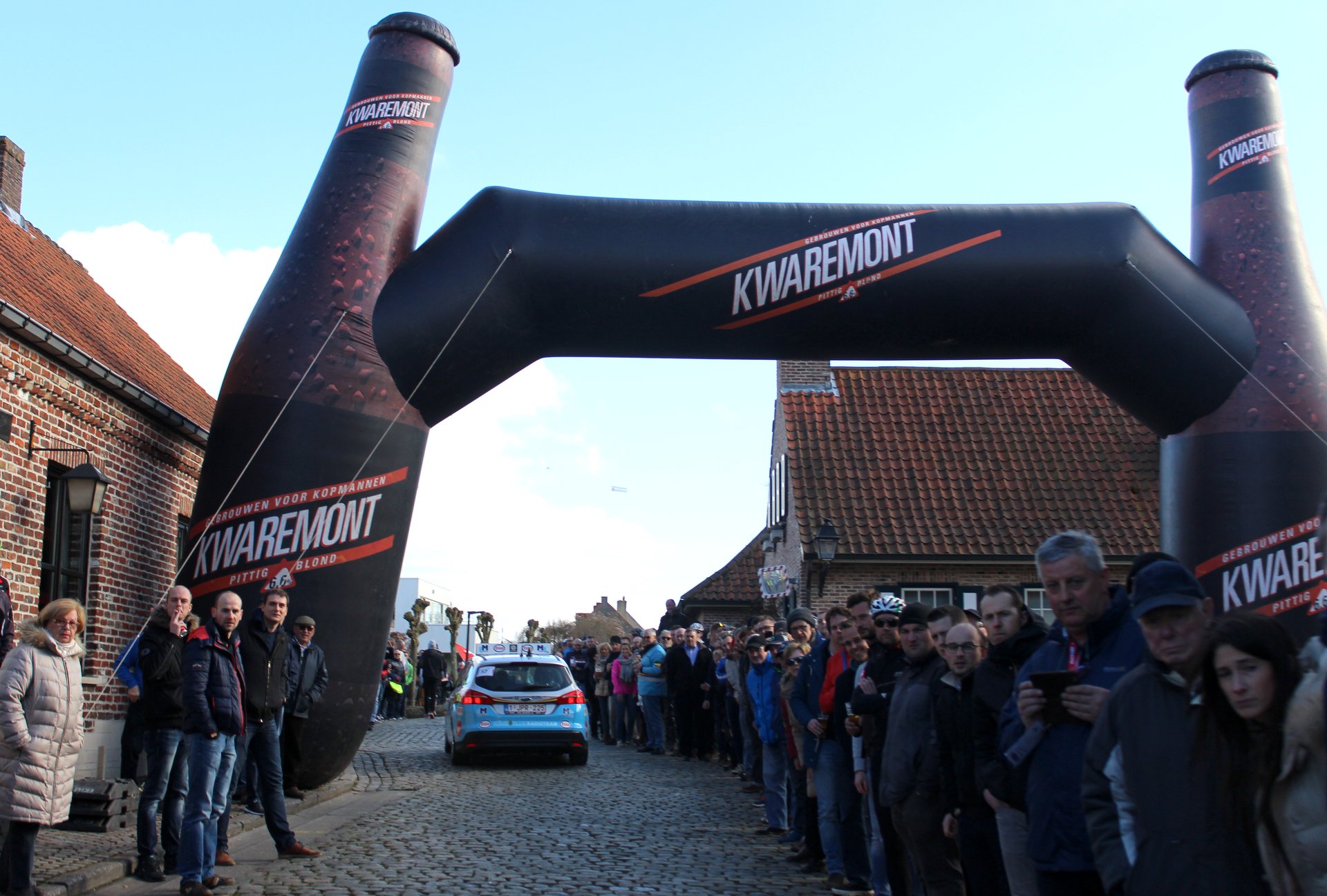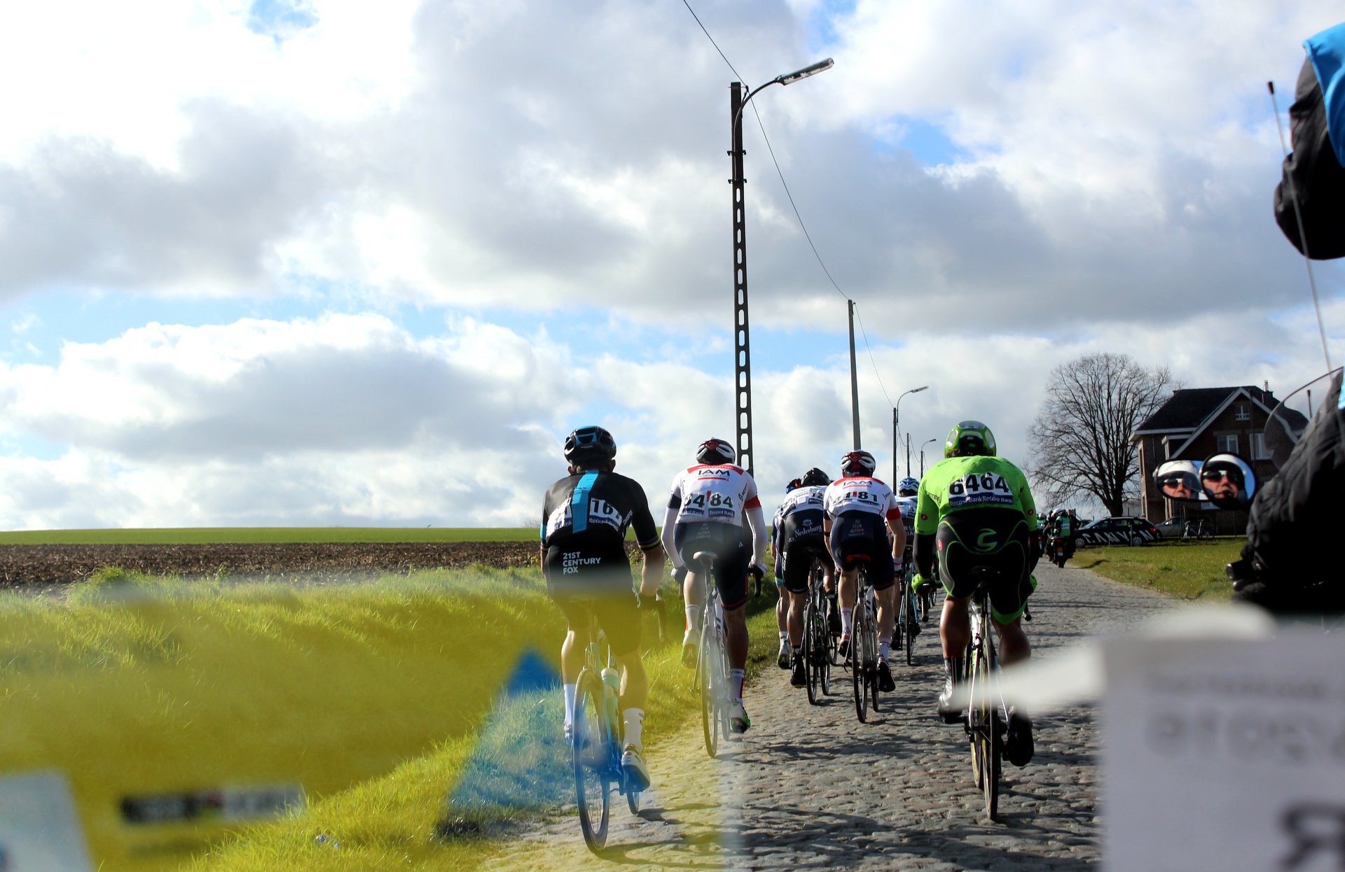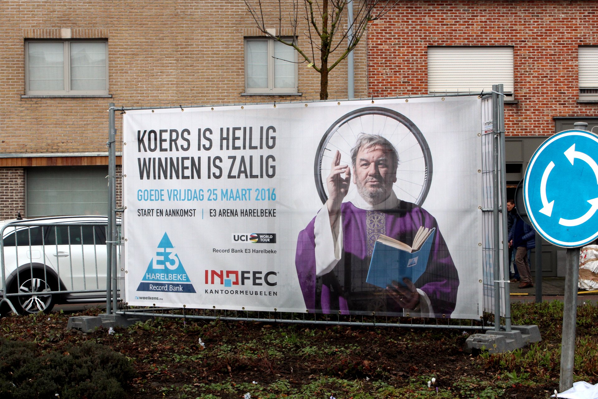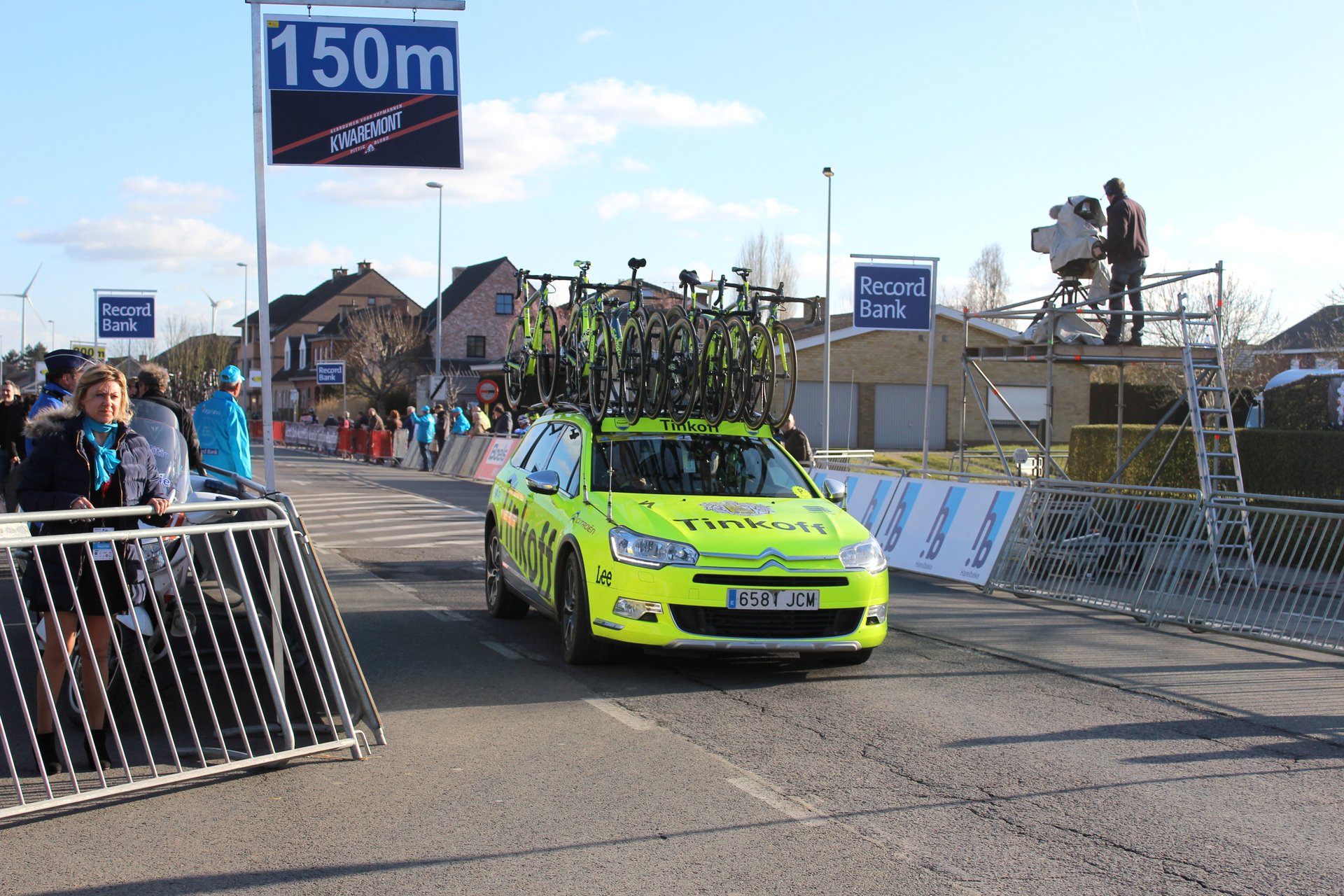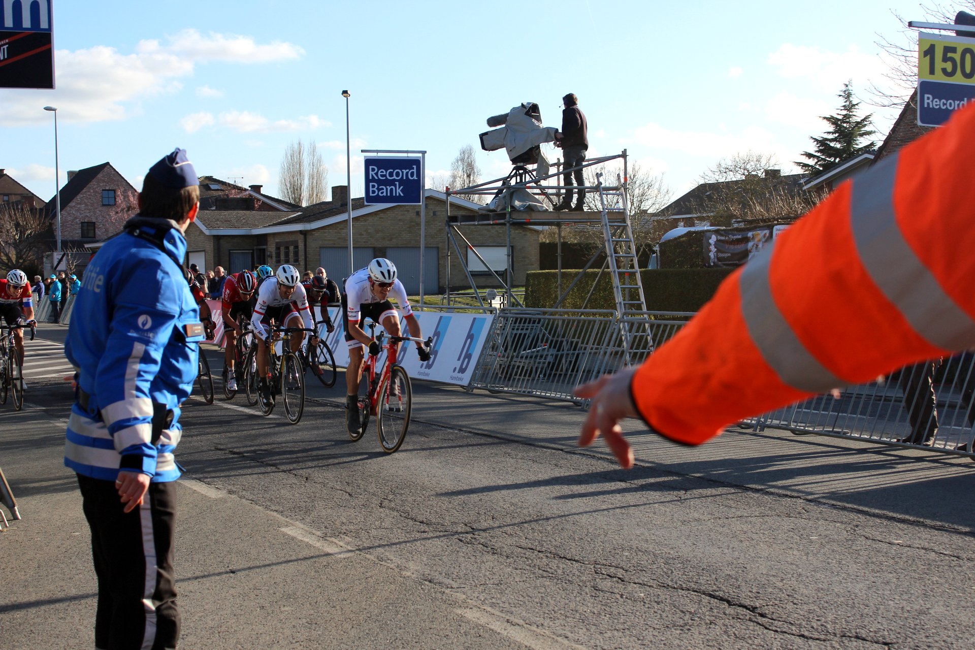 Rudie is a skilful driver, zipping along the back roads of Belgium with motos surrounding him. On television you never really see the sheer volume of motorbikes involved in a race the size of E3. It seems like every motorcycle rider in Flanders has been pulled in. There are the obvious ones, carrying TV, radio, and photographers, flitting around the head of the race, on roads barely large enough for a single car. Every junction, every piece of road furniture has an outrider on, blowing their whistle and waving their flag. These guys (seemingly all males) perform an admirable job, rolling around the race at breakneck speed. So many of them.