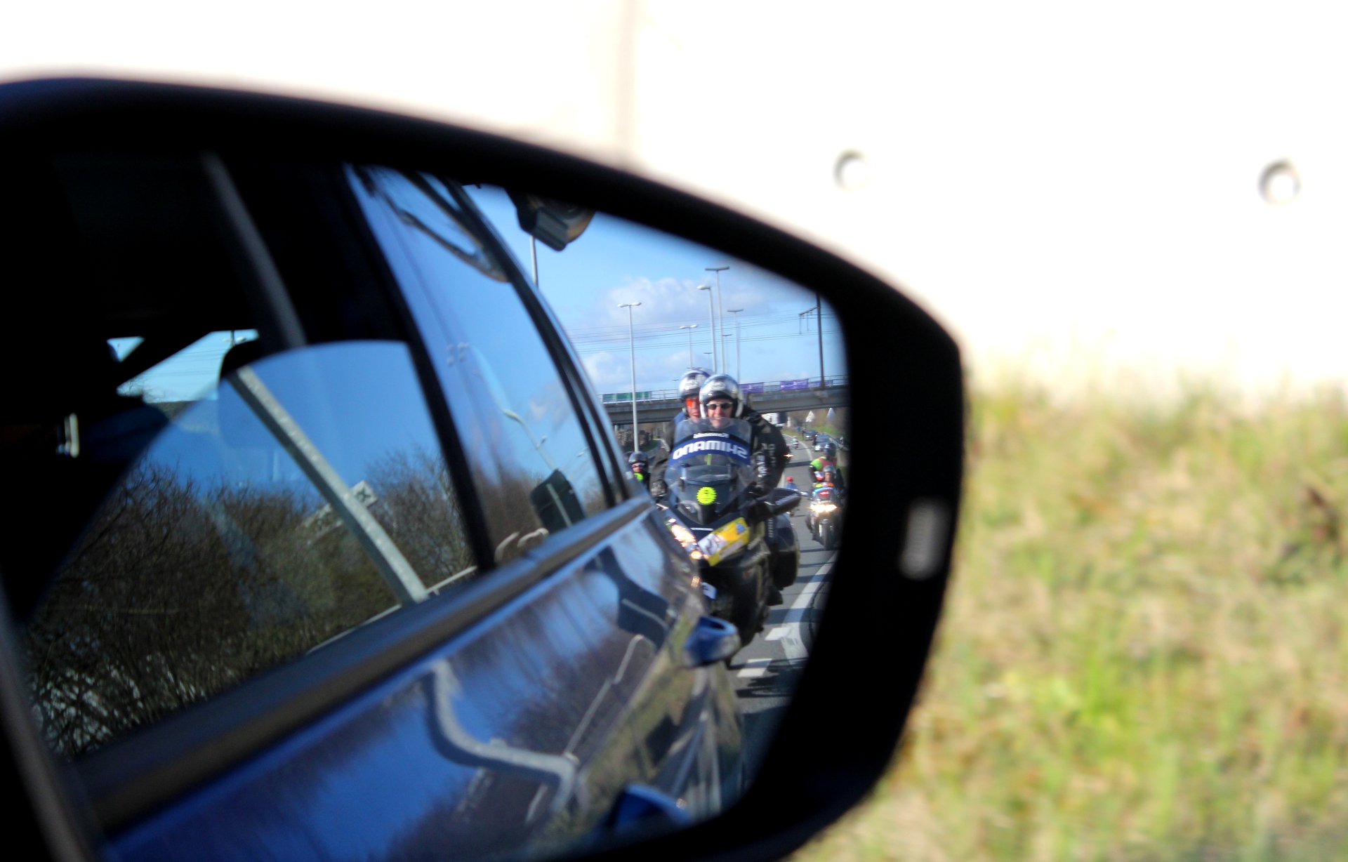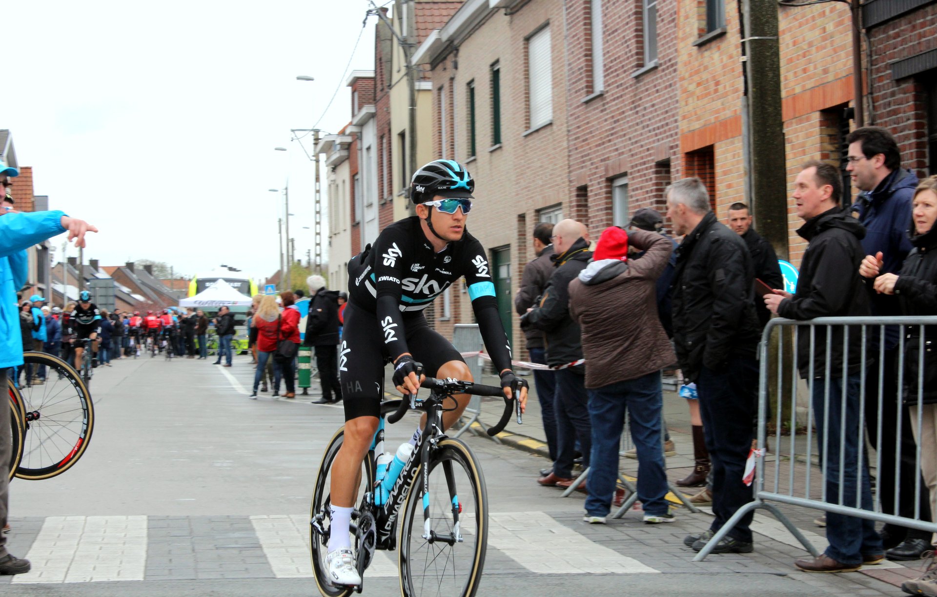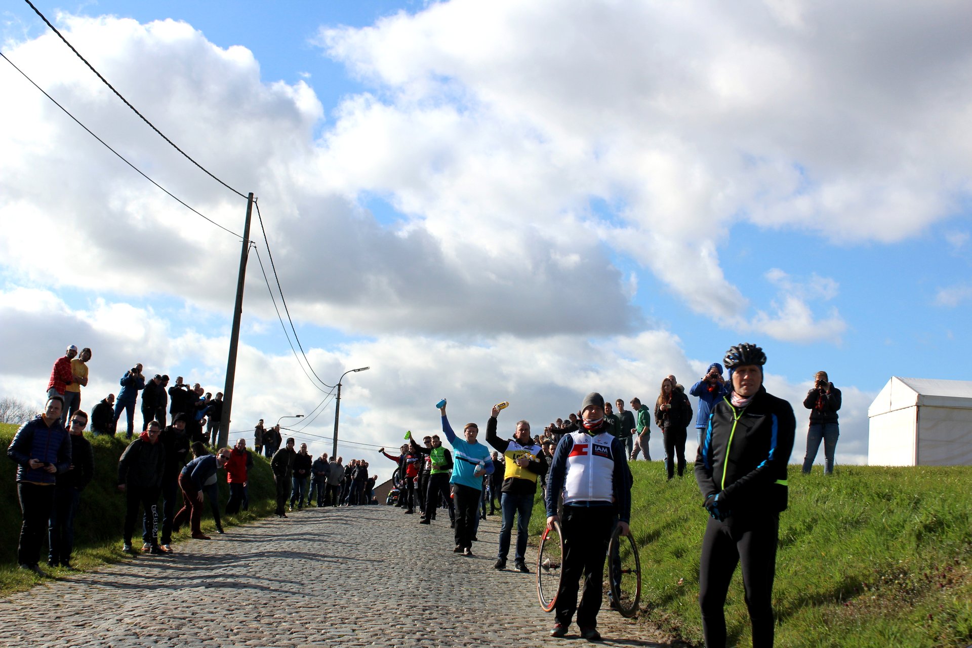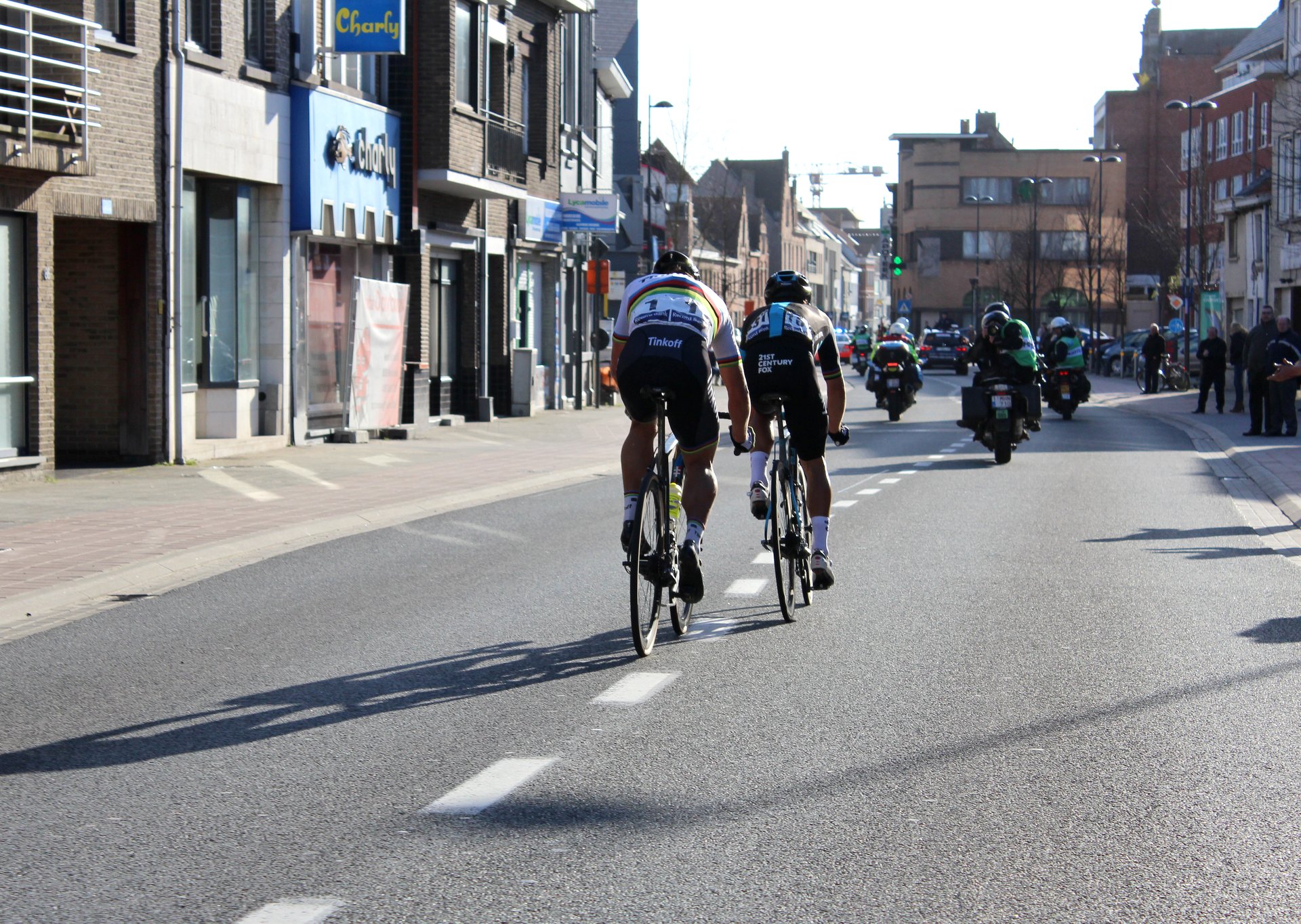 Rudie is a skilful driver, zipping along the back roads of Belgium with motos surrounding him. On television you never really see the sheer volume of motorbikes involved in a race the size of E3. It seems like every motorcycle rider in Flanders has been pulled in. There are the obvious ones, carrying TV, radio, and photographers, flitting around the head of the race, on roads barely large enough for a single car. Every junction, every piece of road furniture has an outrider on, blowing their whistle and waving their flag. These guys (seemingly all males) perform an admirable job, rolling around the race at breakneck speed. So many of them.