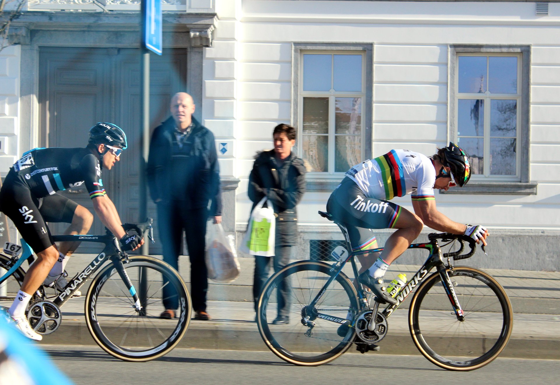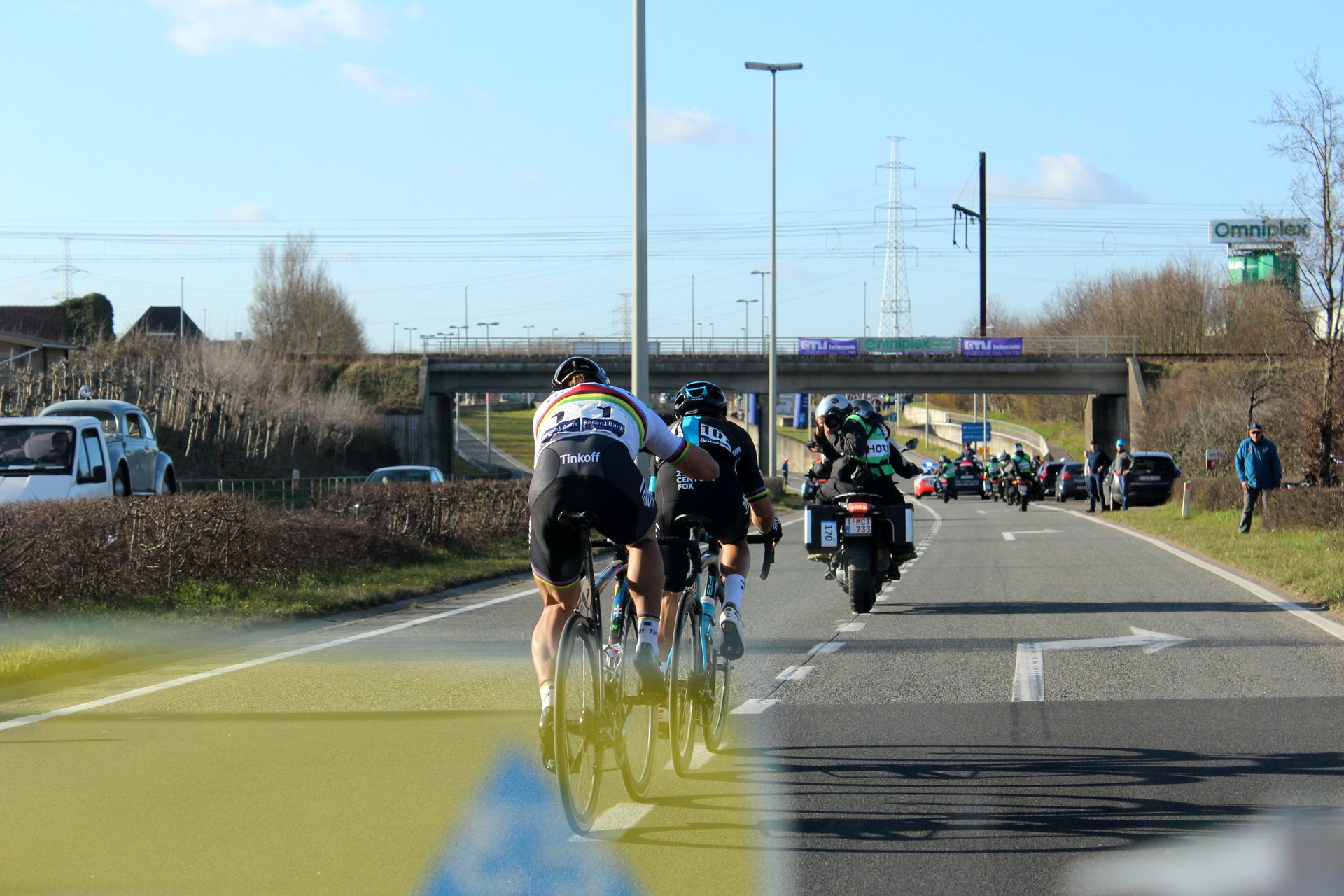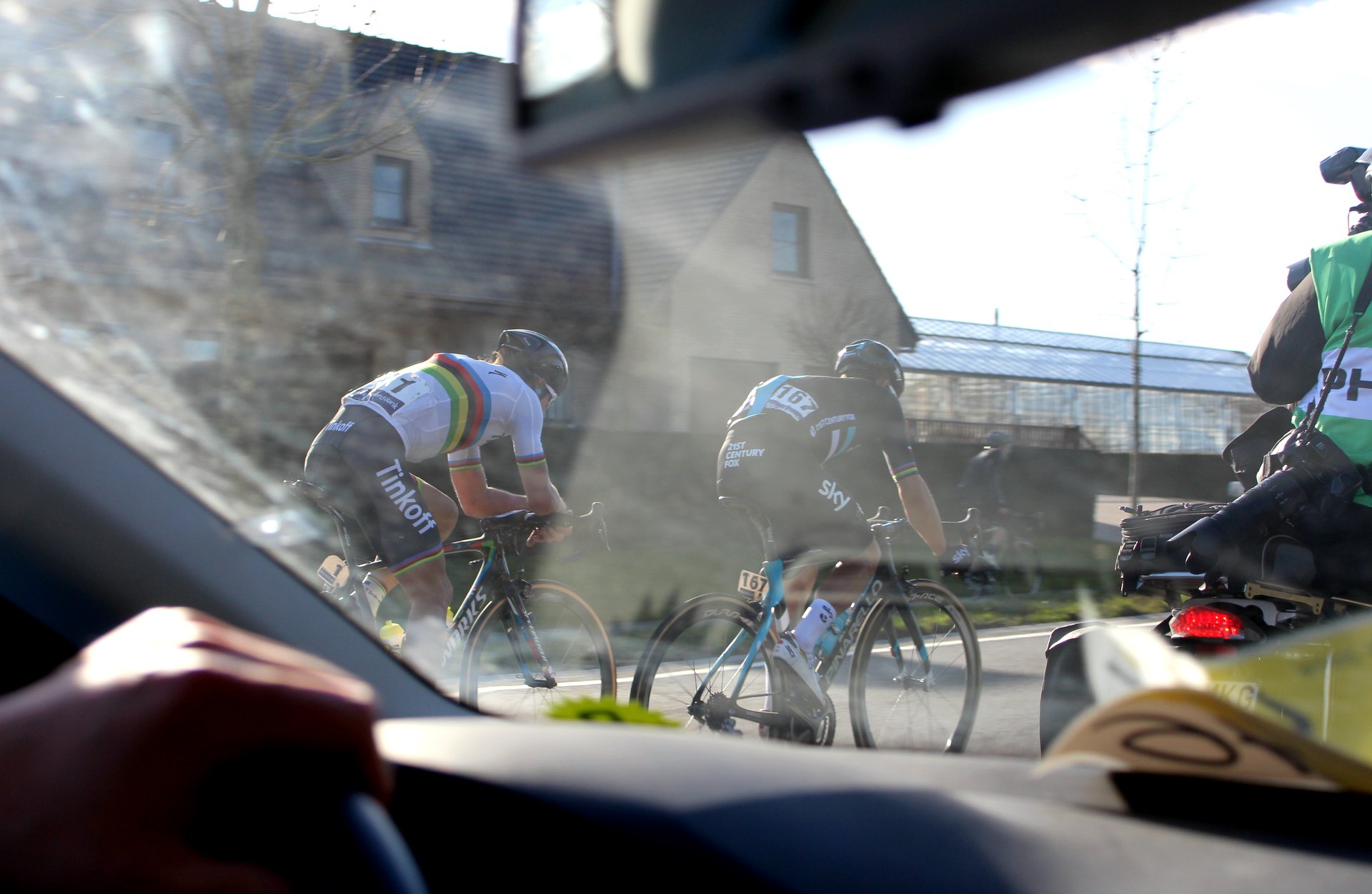 The atmosphere in the car is one of steady tension throughout the race, with the radio informing us of progress and the action as it unfolds behind us. The mood is lightened as we hear about the second break coming together, it carries the likes of Tony Martin, Fabian Cancellara, Michal Kwiatkowski and the world champion, Peter Sagan. This is where the day’s winner will be coming from. The Shimano crew are resolutely professional, but they are cycling fans to the core, and the sound of these names means big things about to happen.