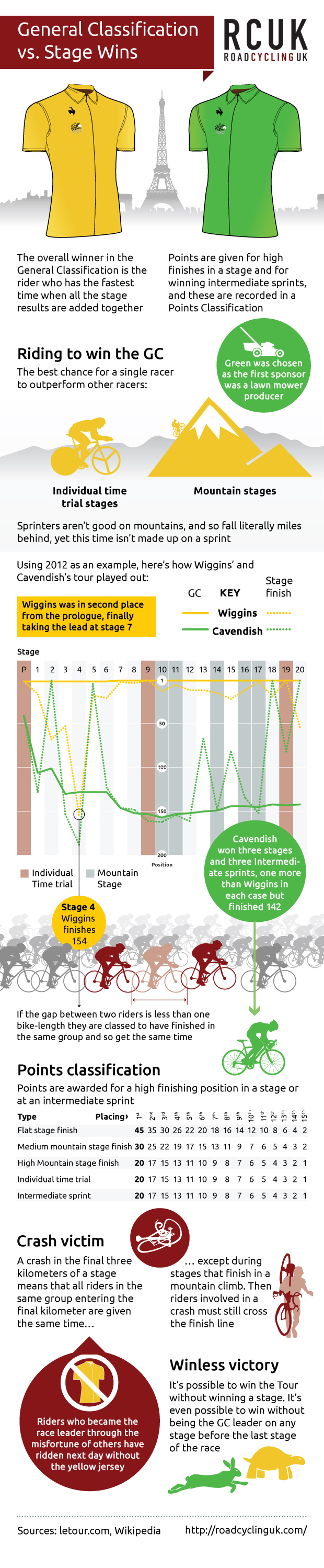 For a better understanding of the races within a race for the maillots jaune and vert, check out the infographic below, the second in a series to run throughout the Tour de France.
