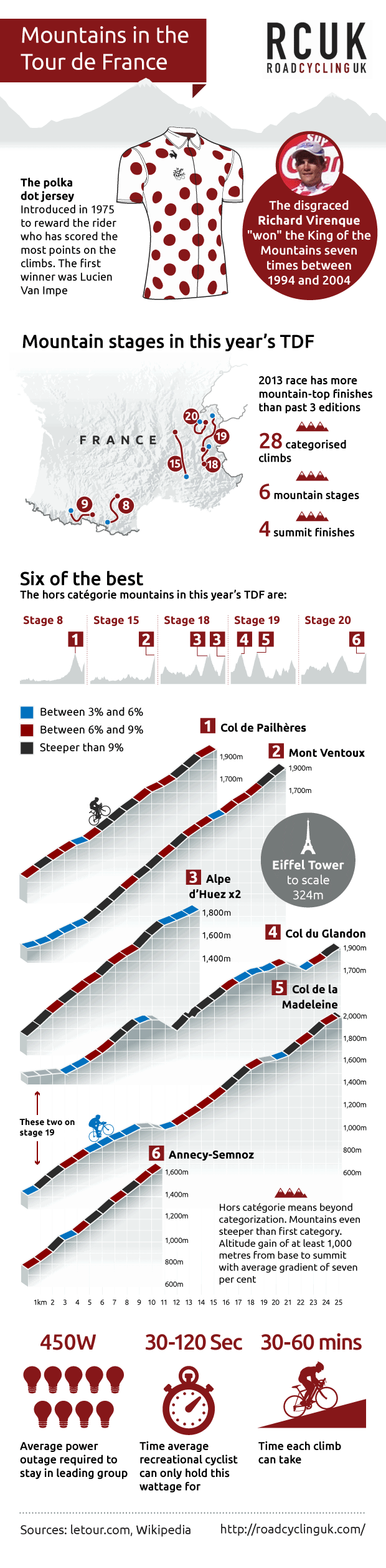 Check out our infographic, which details the greatest climbs of the 2013 Tour de France and the effort needed to conquer them.