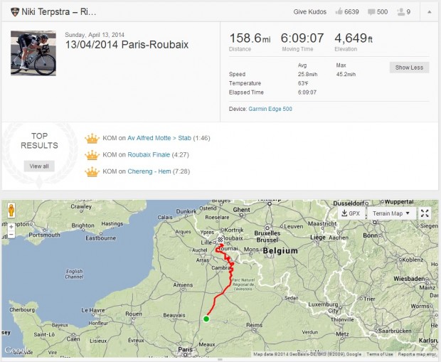 Terpstra also uploaded his victorious ride to Strava and the Dutchman has now received the most ‘kudos’ for a single activity in the history of the site. 6636 at the last count – be sure to add your own appreciation of the 29-year-old’s heroics.