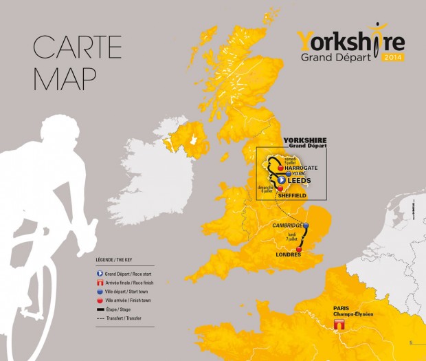 The 2014 Grand Départ will see Yorkshire host two stages, on the weekend of July 5 and 6, before the race moves south for a third stage from Cambridge to London on July 7.