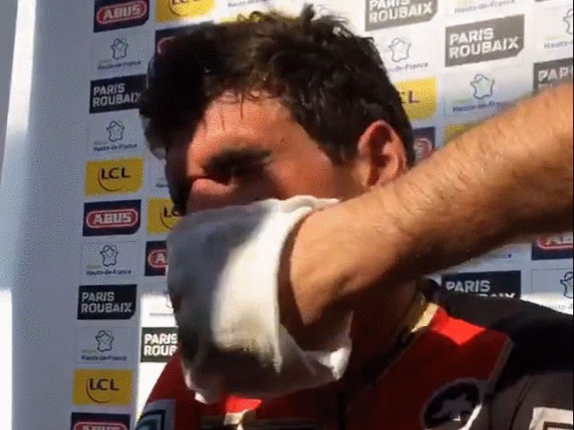 This year’s Hell of the North saw a pretty dire runout for fan favourite Peter Sagan, while race winner Greg van Avermaet will have many reasons to be delighted; not least because he was wiped down post-race with the official Mitten of Honour.
