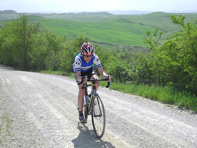 Riding on the white gravelled roads of the Strade Bianche