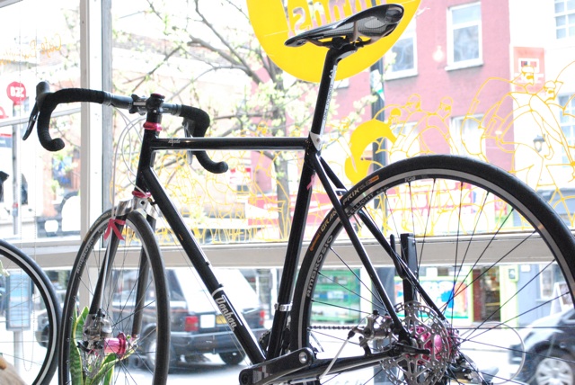 Five road and town bikes by Norwich builder, Tom Donhou, winner of the ‘best in show’ award at the 2011 show, are currently hanging in the windows of the Old Street café.