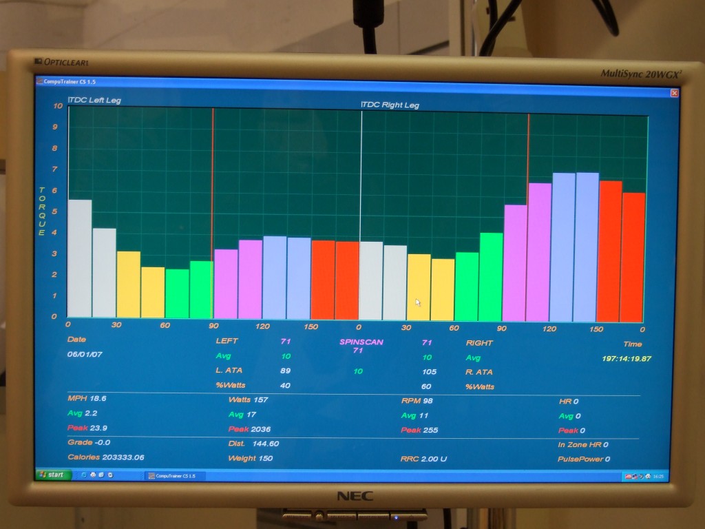 - Graph of pedalling torque against pedal position – both legs
