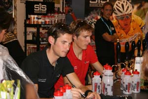 During the expo CSC-Saxo Bank riders Fabian Cancellara, Kurt Aversen, and Andy and Frank Schleck appeared on the SiS stand to say a big thank you to SiS for all their support and to meet their fans at the show.