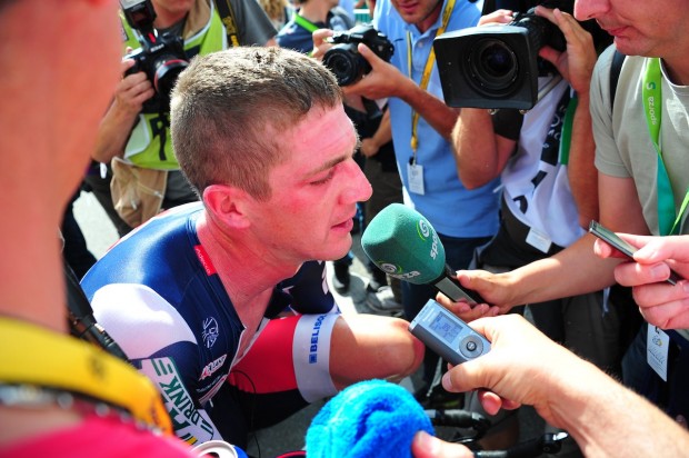 As with Team Sky last year, Lotto-Belisol will attempt to “make a match of it” in the mountains as well as the sprints at this year’s Tour de France. They are ably equipped to do so, with Greipel for the flat stages, and Jurgen Van Den Broeck for the GC. Van Roosbroeck’s relationship with the reportedly ice-cold Van Den Broeck is warm, developed from the earliest races of the rider’s nine-year professional career, when he joined US Postal as a neo-pro. He sees first hand the efforts his countryman and near neighbour makes in training, most recently during a recce in Corsica, and believes his readiness for suffering and sacrifice will allow him “to play for the podium” on the spectacularly hard parcours that will mark the centenary Tour.