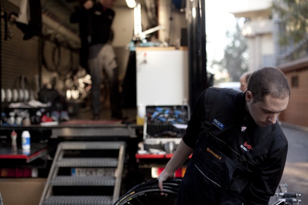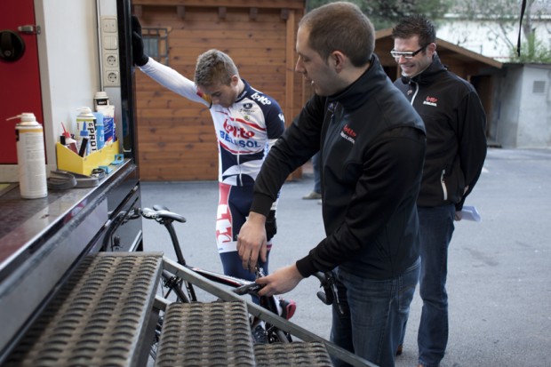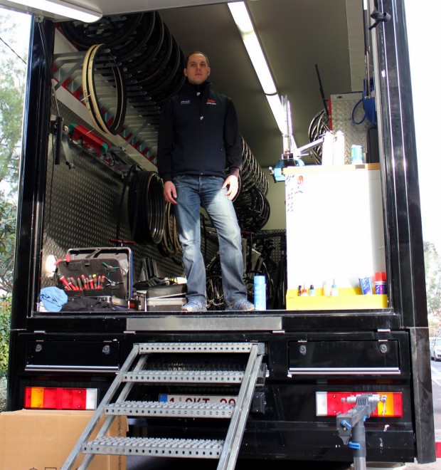 “It’s a way of life,” says Lotto-Belisol mechanic Frederik Moons as he shows me around the team’s truck at their pre-season training camp in Benicassim, Spain, and describes how he will spend up to 200 days on the road this year.