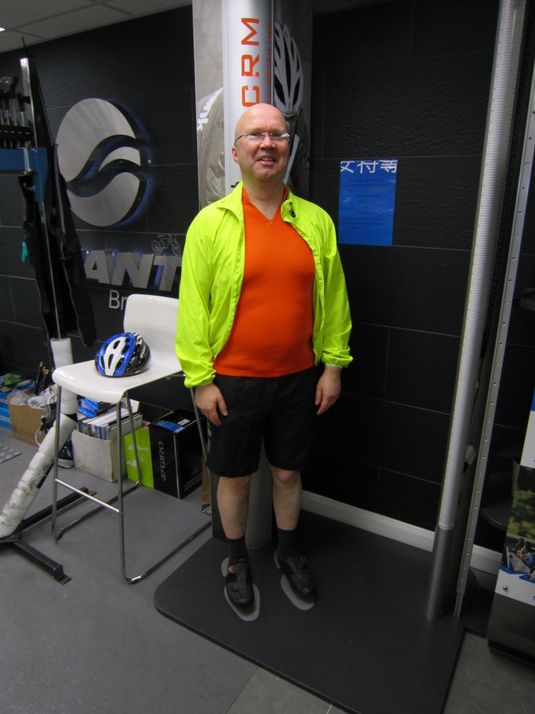 Prior to measurement, Giant Bromley’s Cedric reckoned on a size Small Defy 2. When the machine produced its decision, size Small it was – to within 2mm. Note that Frank is not yet a fully-fledged MAMIL. He has yet to adopt Lycra. That will come soon.