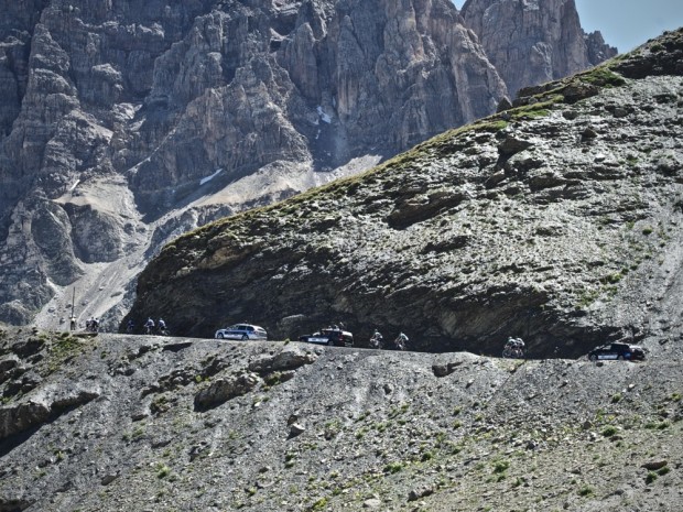 The hors categorie climbs of the Col du Telegraphe and of the Galibier that have led to this point weigh heavy in the legs. The effects of yesterday’s team time trial to the summit of the Col du Glandon continue to make themselves felt. Words of instruction pour through the earpiece from the directeur sportif drivng the car that grinds remorselessly behind. Alongside, a professional rider, his progress seemingly effortless, offers words of encouragement. Tomorrow, there will be more: specifically, a climb to the summit of the Col de la Madeleine.