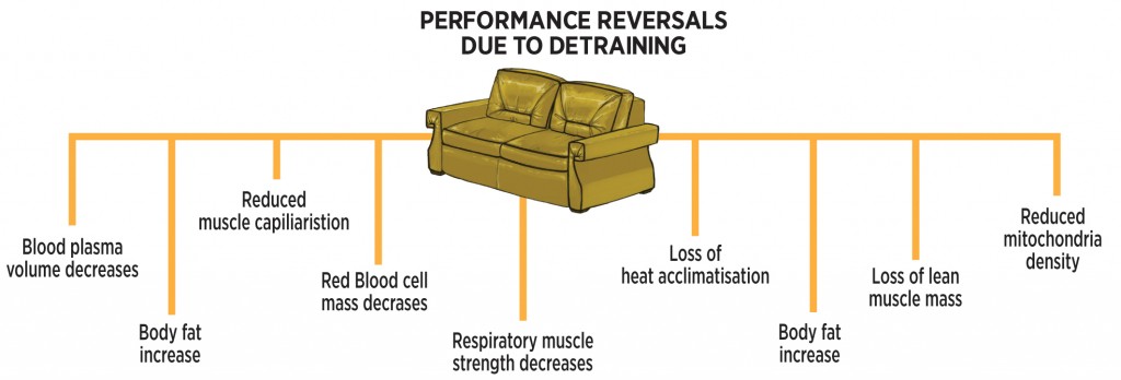 Over the past few articles we’ve looked at how applying the ‘principles of conditioning’ and gradually increasing your training volume and intensity makes you a better rider, but only if you factor in sufficient recovery periods to allow training adaptations to take place. This week we’re going to take a look at what happens when, for whatever reason, you stop training and everything starts to go in the opposite direction.