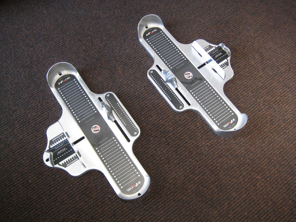 Jez then conducted a standing observation, looking at, and measuring, my hips, shoulders, arms and feet, establishing that my pelvis is level, as are my shoulders, which are 40cm wide, compared to the 42cm handlebars I was riding. Straight away, Jez said dropping down to 40cm handlebars would go some way to alleviating back pain. From measuring my inseam (84cm), Jez was able to calculate a benchmark for saddle height (84 x 0.893 = 74.2cm) and frame size (84 x 0.657 = 55.188 which rounds down to 55cm).