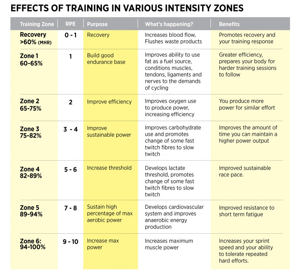 So you can see from the above table that myriad performance benefits exist within the range of training zones and I can immediately hear your mind ticking over with the thought that “Yes please, I’ll take all of those.” And, if you were a pro road racer with about 20 hours per week year-round to train, you could probably go some way to achieving that. But back in the real world, where training time is limited, we have to be more realistic, and this again is where the benefits of training zones become clear.