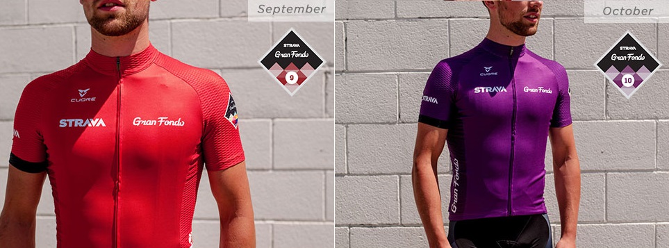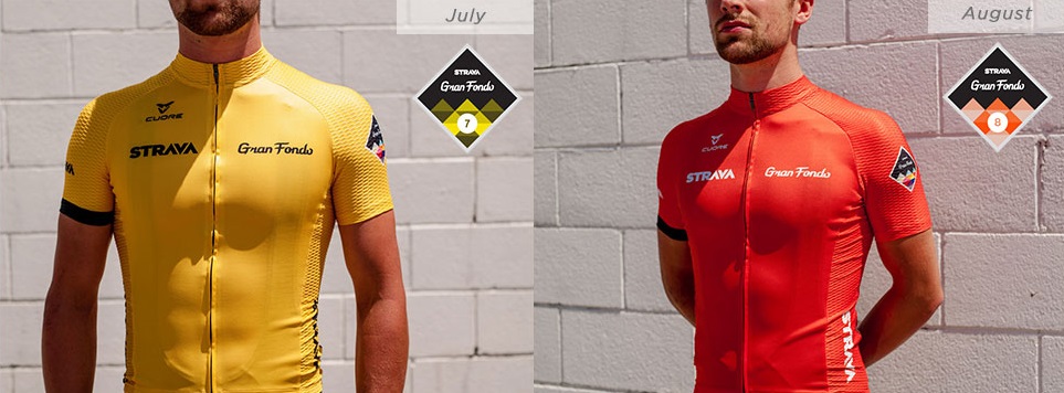 And the reward for any rider who completes the 130km challenge in July is the option to purchase one of the Strava Gran Fondo jerseys – with the next six jerseys unveiled.