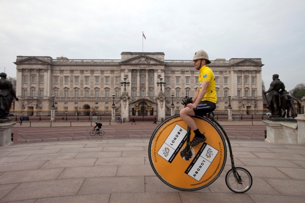 Joff rides in front of Buckingham Palace – the third stage of the Tour de France will finish on the Mall in July (Pic: David Parry/PA Wire)
