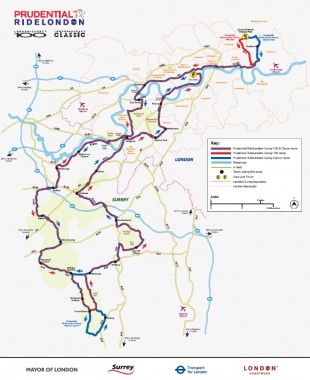 Details have been announced of the routes to be used for this summer’s inaugural Prudential RideLondon-Surrey 100 sportive and London-Surrey Classic road race.