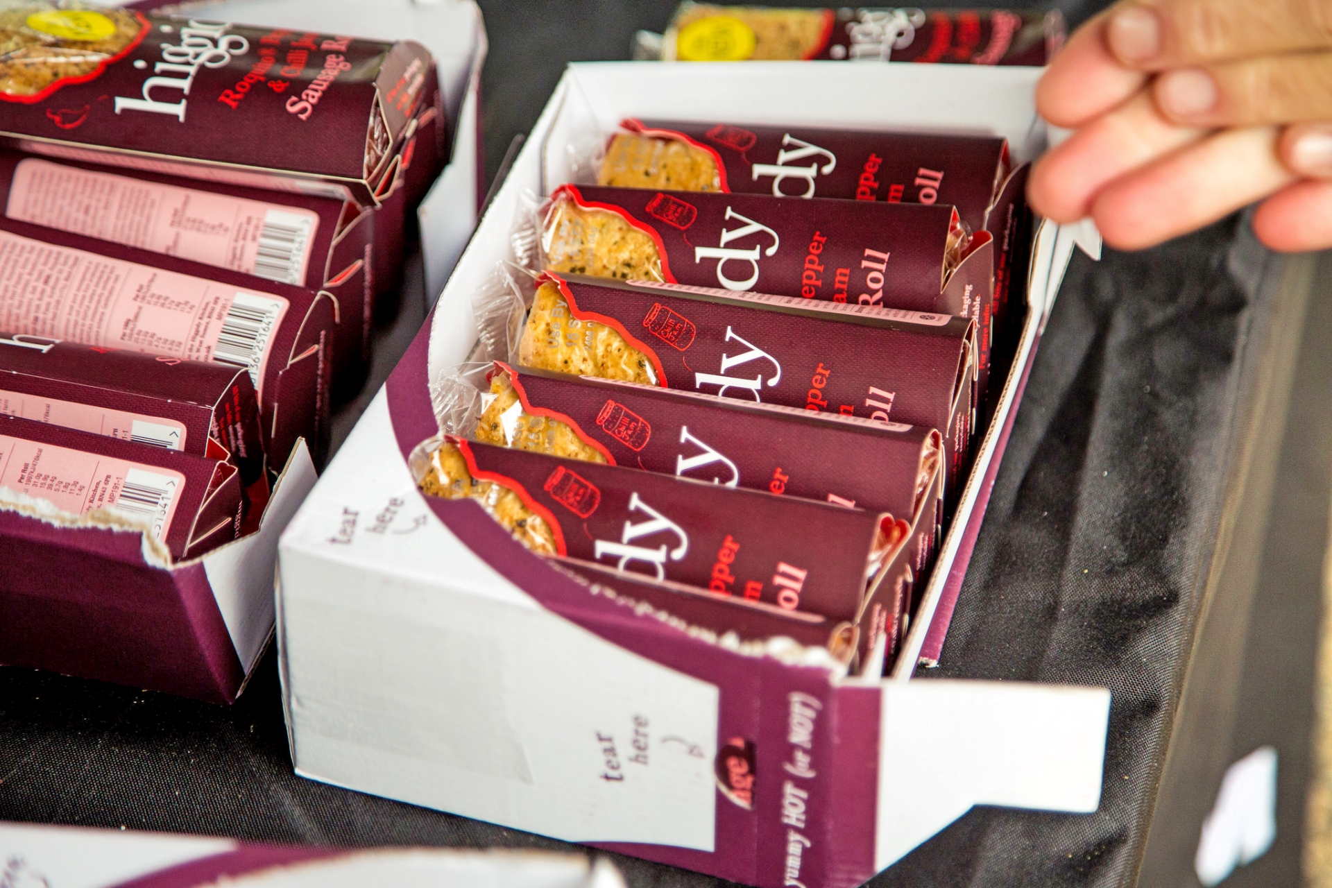 Delicious sausage rolls, pork pies, scotch eggs, fruit, crisps, chocolate, nut bars and even various rolls and sandwiches and slices of cheese at the second pitstop of the day on the Somerset Levels are always replenished, ready for everyone that comes through.