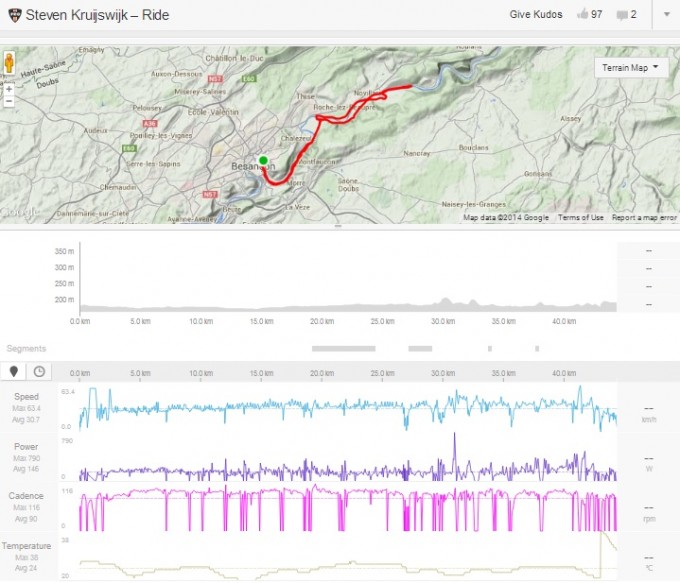 Kruijswijk efforts, which saw his put out an average of 146 watts – followed a moderate route with few climbs to speak of.