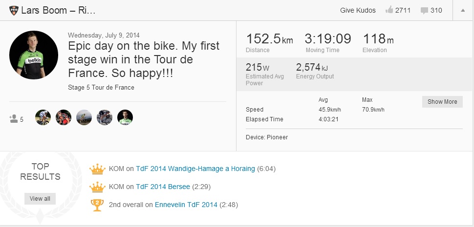 Ever-popular route mapping and ride tracking app Strava has achieved another first – a Tour de France stage win uploaded to the site courtesy of Lars Boom (Belkin).