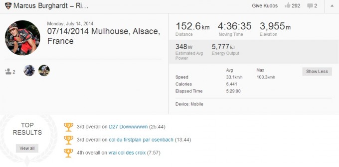 Both Pinot, who suffered from a phobia of descending in 2013, and the injured Burghardt use Strava and it is possible to track their efforts on the gruelling mountainous stage.